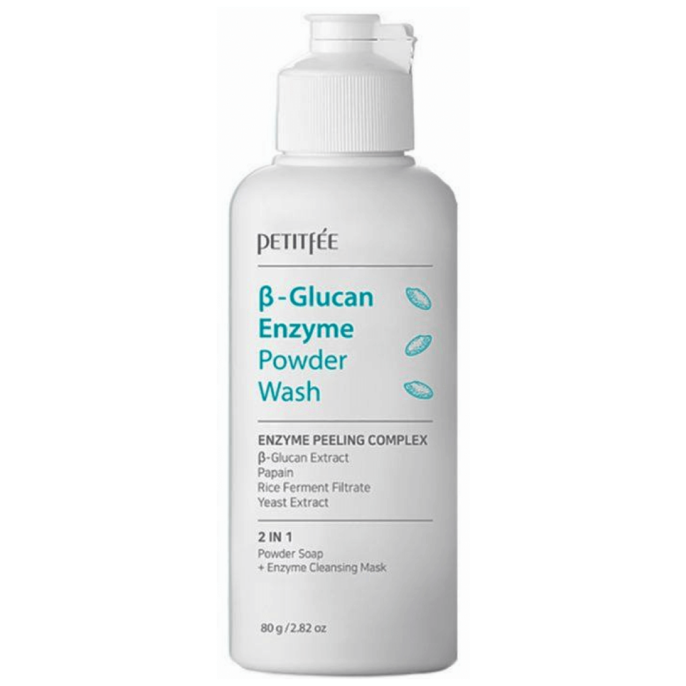 Petitfee B-Glucan Enzyme Powder Wash — это пудра мелкого помола, которая при контакте с водой превращается в нежную воздушную пенку, которая тщательно очищает кожу от всех загрязнений: остатков макияжа, себума, омертвевших клеток кожи. Средство также прекрасно очищает поры, избавляя от чёрных точек, регулирует работу сальных желез и предупреждает появление чрезмерного жирного блеска в течение дня. Устраняет тусклость, освежает и придаёт здоровое сияние.