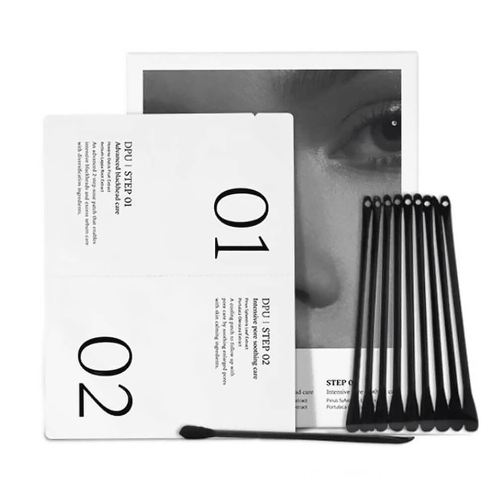 Двухэтапный набор для удаления чёрных точек DPU Blackhead Clear 2 Step Nose Patch помогает удалить угри и осветлить сальные нити на носу, сузить расширенные поры и успокоить кожу. Простой и комфортный в использовании, набор позволяет в 2 этапа очистить и успокоить кожу, не травмируя кожу. Рассчитан на 5 применений. Содержит экстракты белой ивы, чайного дерева, гамамелиса, водорослей, мяты, сосны и портулака, а также фитостеролы, пантенол и бетаин.