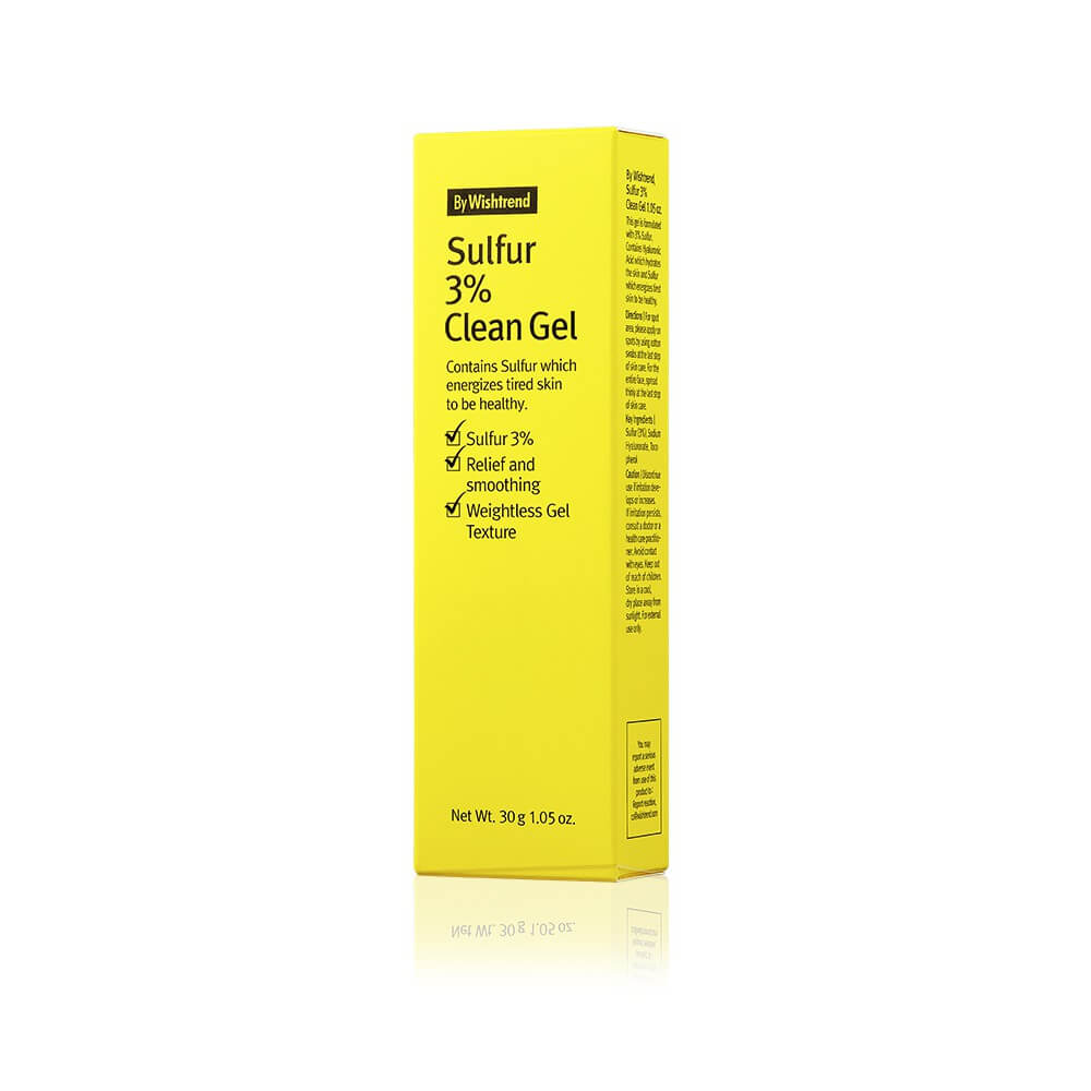 Гель By Wishtrend Sulfur 3% Clean Gel для локального применения создан специально для проблемной кожи, страдающей от акне и воспалений. За счет содержания серы в составе, средство купирует воспаления и ускоряет заживление прыщей. Гель обладает антибактериальным действием, очищает поры, при этом не сушит раздражённую кожу.