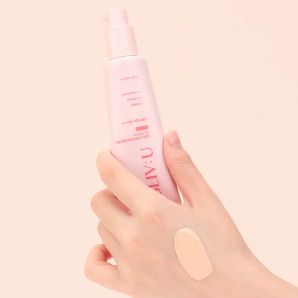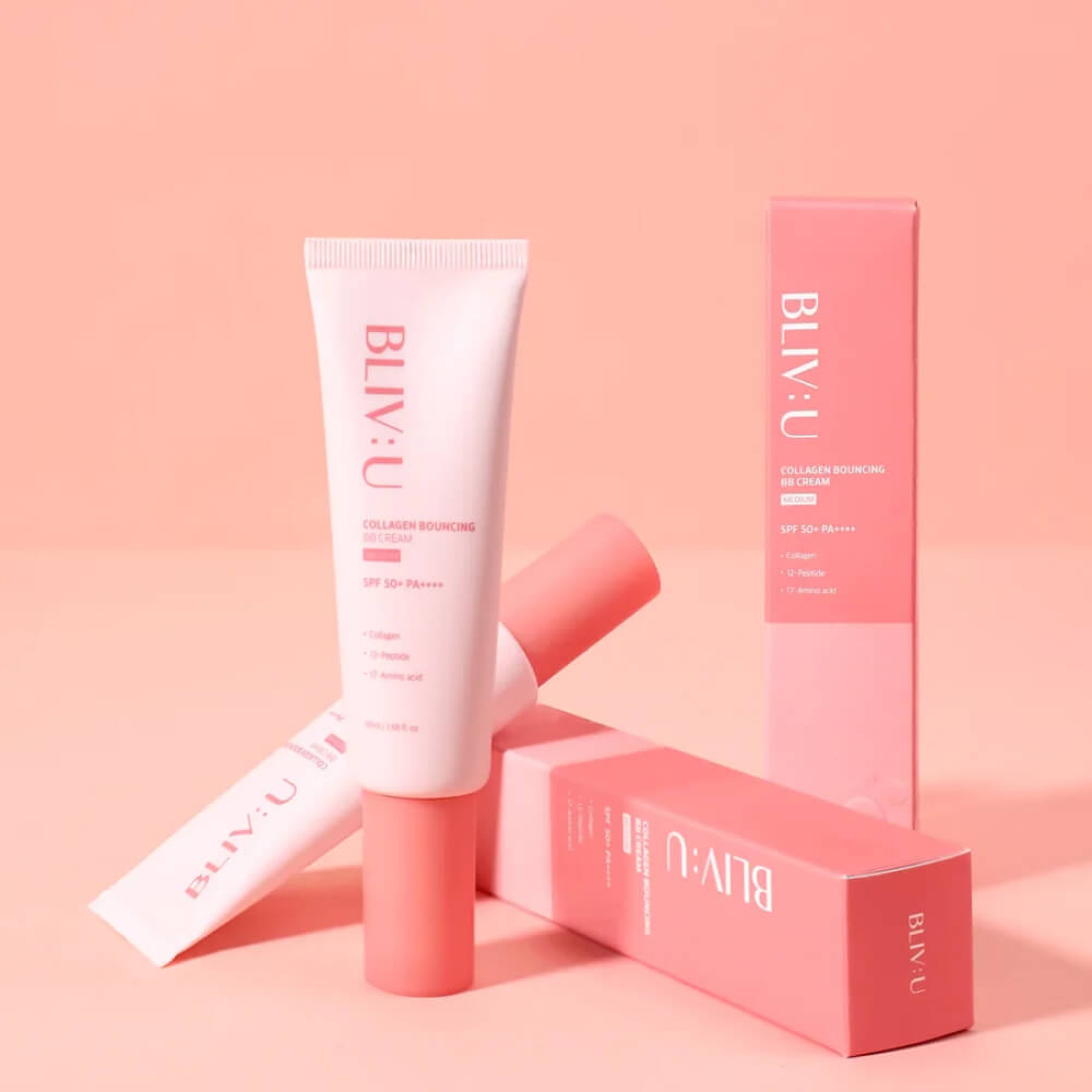 Коллагеновый BB-крем с пептидами BLIV:U Collagen Bouncing BB Cream SPF50+ PA++++ для лёгкого и ровного тона с естественным сиянием. Обладает невесомым покрытием и не создаёт эффекта маски, особая ухаживающая формула дополнительно увлажняет кожу, избавляет от сухости и стянутости. Содержит аденозин, комплекс пробиотиков и аминокислот.