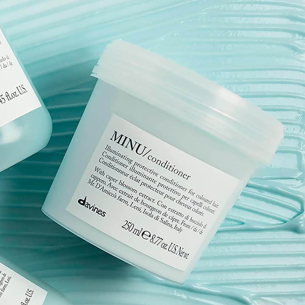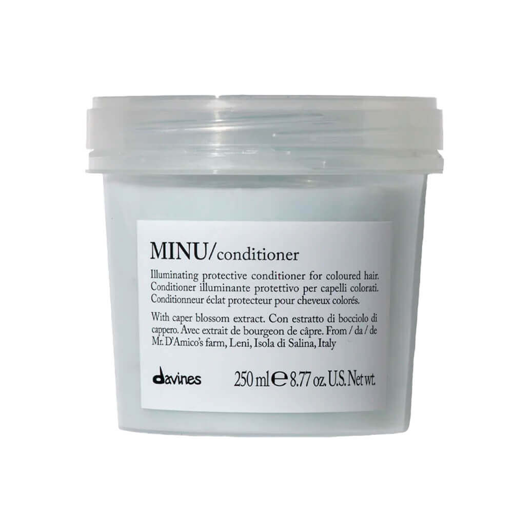 Защитный кондиционер для окрашенных волос с экстрактом каперсов Davines MINU Conditioner увлажняет и разглаживает, сохраняя яркость и продлевая стойкость цвета. Идеально подходит для окрашенных и подверженных химической укладке волос. Содержит экстракт каперсов с итальянского острова Салина, питательные масла ши, жожоба и сладкого миндаля, а также токоферол. Уровень pH ~4.