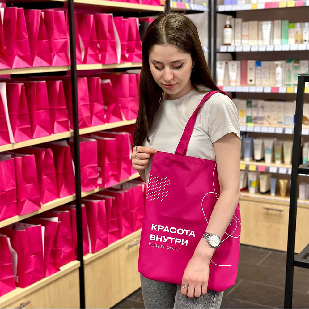 Розовая сумка-шоппер «Красота Внутри» — это стильный аксессуар сочного розового цвета, который станет ярким весенним акцентом для любого образа. Шоппер из натурального материала с удобными ручками вмещает все повседневные вещи: в сумке можно носить документы, кошелек, смартфон, power-bank, бутылку воды. Шоппер украшает фирменный слоган Hollyshop, ставший символом любви к себе.