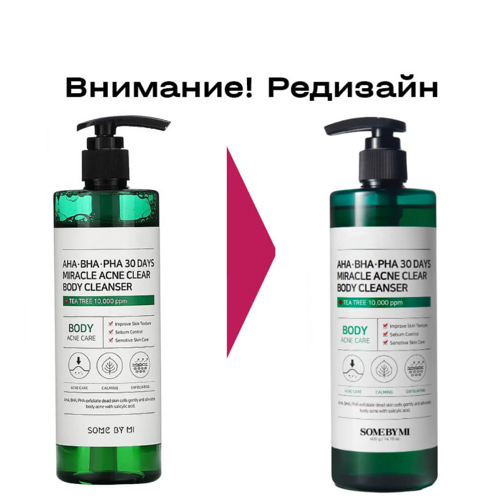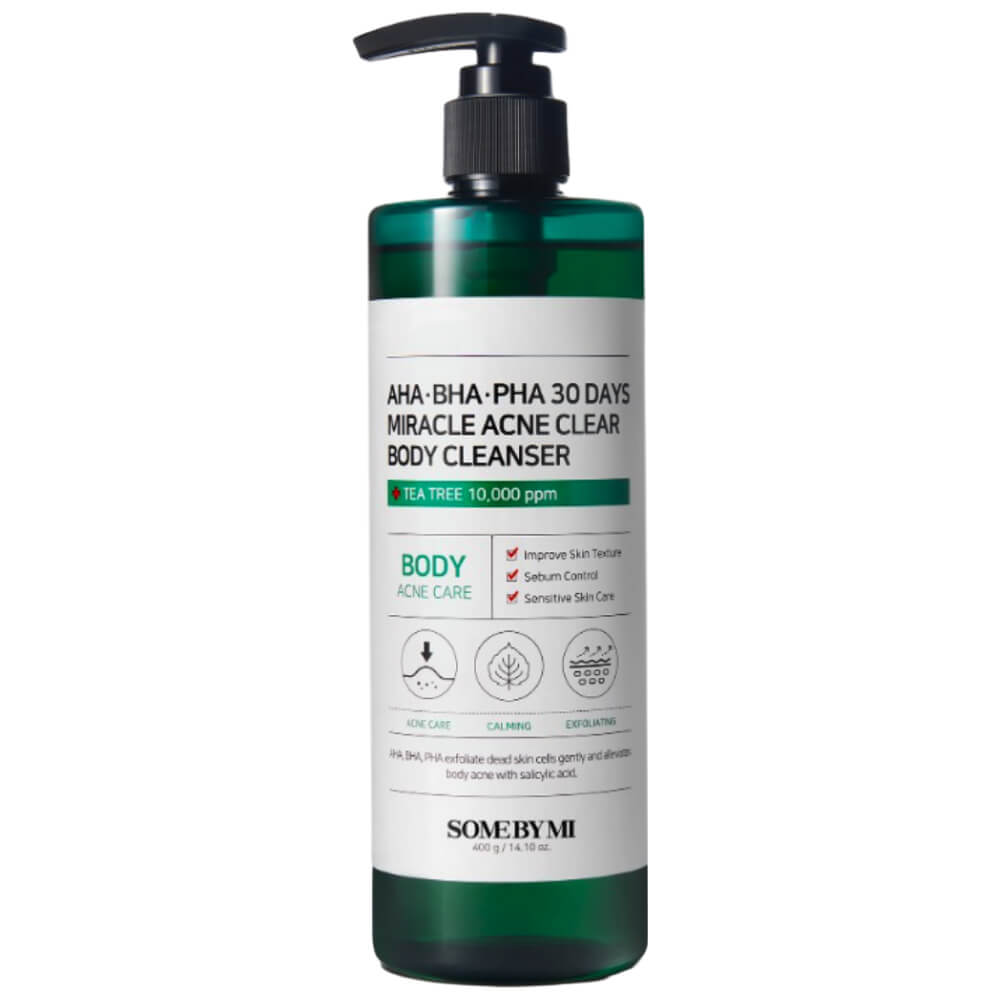 Гель для душа против акне Some By Mi AHA-BHA-PHA 30 Days Miracle Acne Clear Body Cleanser обладает мощнейшим антибактериальным свойством, эффективен в лечении воспалений и ускоряет их заживление. Помогает избавиться от раздражений и прыщиков без появления постакне. Содержит комплекс кислот, CICA-комплекс, экстракт чайного дерева и масло эвкалипта.