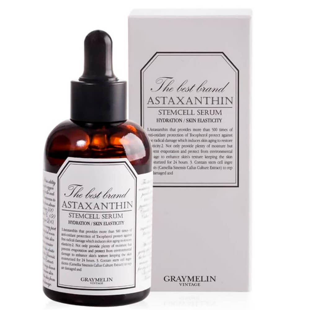Омолаживающая сыворотка со стволовыми клетками GraymelinAstaxantin Stemcell Anti-Wrinkle Serum благодаря комплексу компонентов с выраженным антивозрастным действием эффективно улучшает состояние зрелой и ослабленной кожи: повышает эластичность и упругость тканей, разглаживает морщинки, защищает от фотостарения, замедляет процессы увядания. Действие гиалуроновой кислоты и сквалана направлены на усиленное увлажнение и нормализацию водного баланса. Сыворотка способствует осветлению пигментации и выравниванию тона.