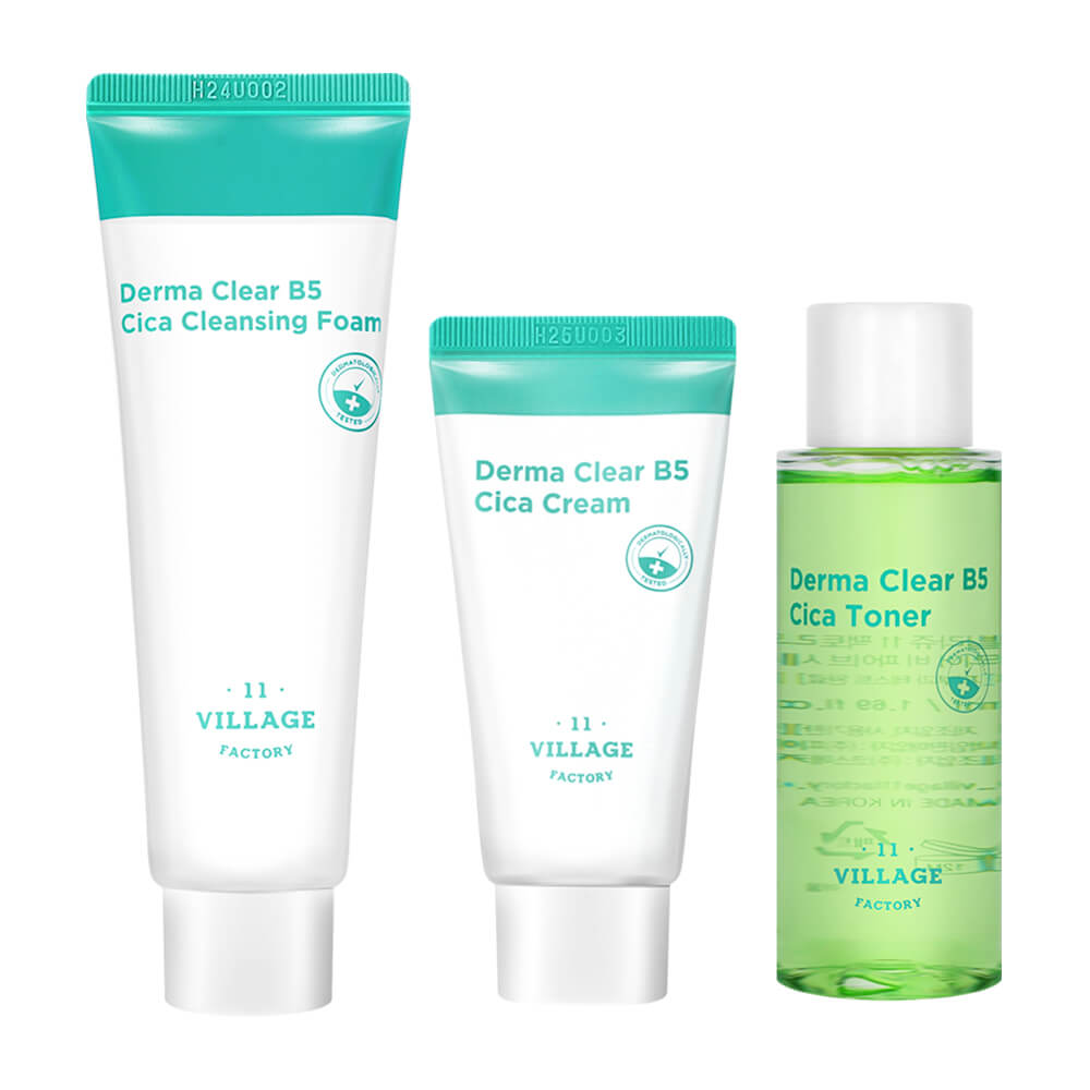 Набор миниатюр для чувствительной кожи Village 11 Factory Derma Clear B5 Cica Miniature Set — это комплексный успокаивающий уход шаг за шагом. Набор содержит 3 средства: для умывания, тонизирования и увлажнения чувствительной кожи. Все продукты содержат центеллу азиатскую — успокаивающий компонент, который заживляет, уменьшает покраснения и укрепляет стенки сосудов, препятствуя куперозу. Средства восстанавливают защитный барьер эпидермиса, увлажняют и смягчают, устраняют раздражение. Набор содержит все необходимые продукты для полноценного ухода и прекрасно подходит для путешествий.