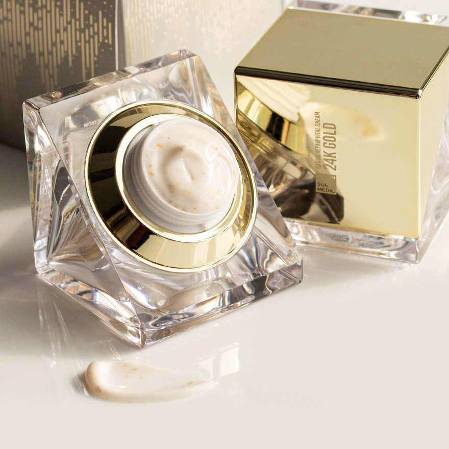 Восстанавливающий крем с экстрактом икры и частицами золота SUR.MEDIC+24K Gold Caviar Repair Vital Cream глубоко питает, разглаживает морщины и кожные заломы, выравнивает рельеф и повышает упругость кожи. Средство улучшает цвет лица, подтягивает и стимулирует синтез коллагена и эластина. Содержит экстракты икры и белого трюфеля, экстракт и частички золота и комплекс пептидов.