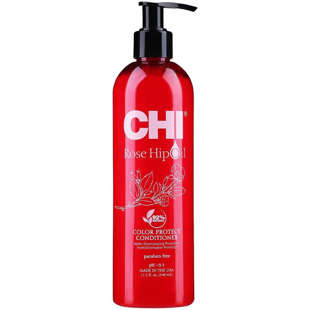 Кондиционер для защиты цвета с маслом шиповника CHI Rose Hip Oil Protecting Conditioner предназначен специально для окрашенных волос, интенсивно увлажняет и обладает высокой антиоксидантной активностью. Сохраняет свежесть, блеск и эластичность волос. Содержит гидролизованный шёлк и кератин, витамин С, пантенол.