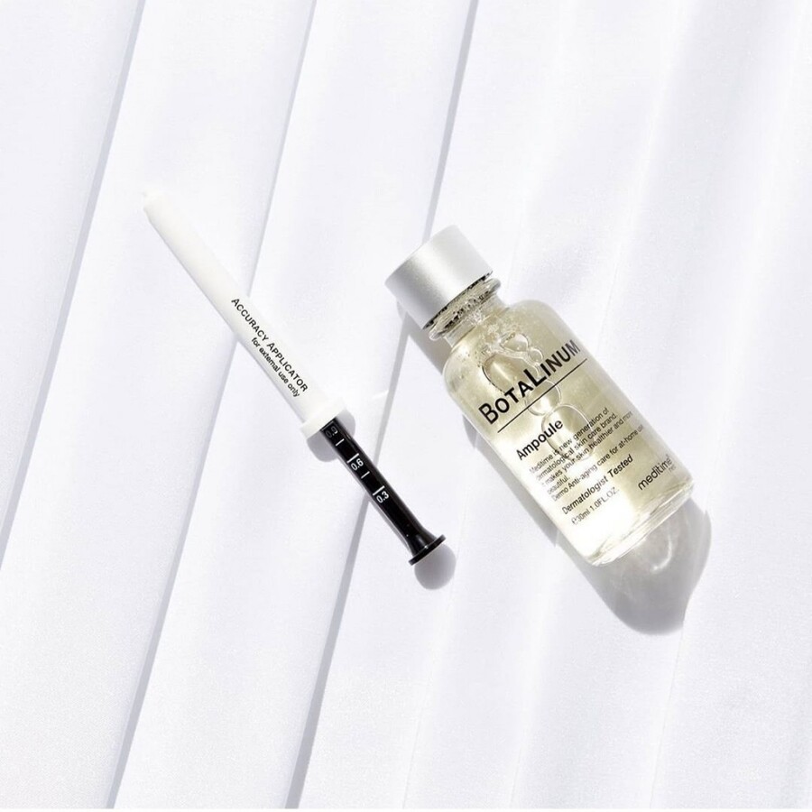 Лифтинг-ампула с эффектом ботокса Meditime Botalinum Ampoule обладает выраженным anti-age эффектом: сокращает глубину и количество морщин, устраняет дряблость и подтягивает овал лица. Ампула повышает упругость и эластичность кожи, разглаживает рельеф, делает кожу более плотной. Содержит ботулин, коллаген, волюфилин и гиалуроновую кислоту.