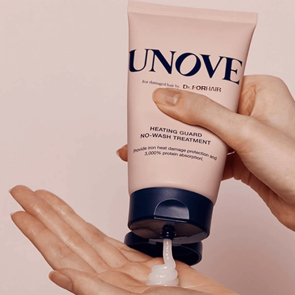 Несмываемая термозащита для волос с кератином Dr.Forhair UNOVE Heating Guard No-Wash Treatment — незаменяемое средство для тех, кто на постоянной основе использует такие средства для укладки, как фен, выпрямитель, плойка и т.д. Разглаживает волосяную фолликулу, избавляет от «ёлочки», предупреждает появление секущихся кончиков и ломкости. Содержит комплекс из 5 растительных масел, 31 вид коллагена и аминокислот.