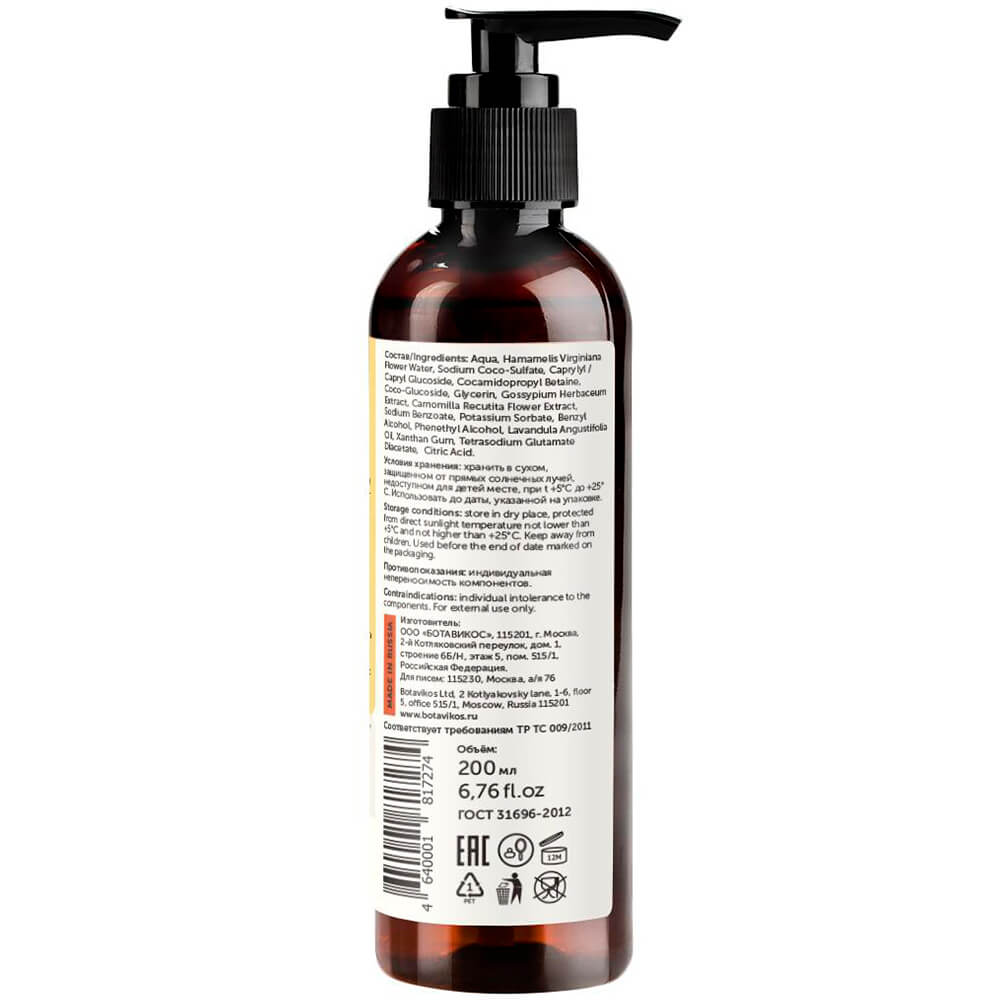 Деликатный детский шампунь Botavikos Gentle Cleansing Witch Hazel Baby Shampoo мягко очищает волосы и кожу головы, не приводит к сухости и раздражению, не щиплет глаза. Пышная лавандовая пена удаляет все загрязнения, смягчая волосы. Содержит натуральные очищающие агенты на основе кокоса, масло лаванды, экстракты ромашки и хлопчатника, а также цветочную воду гамамелиса.
