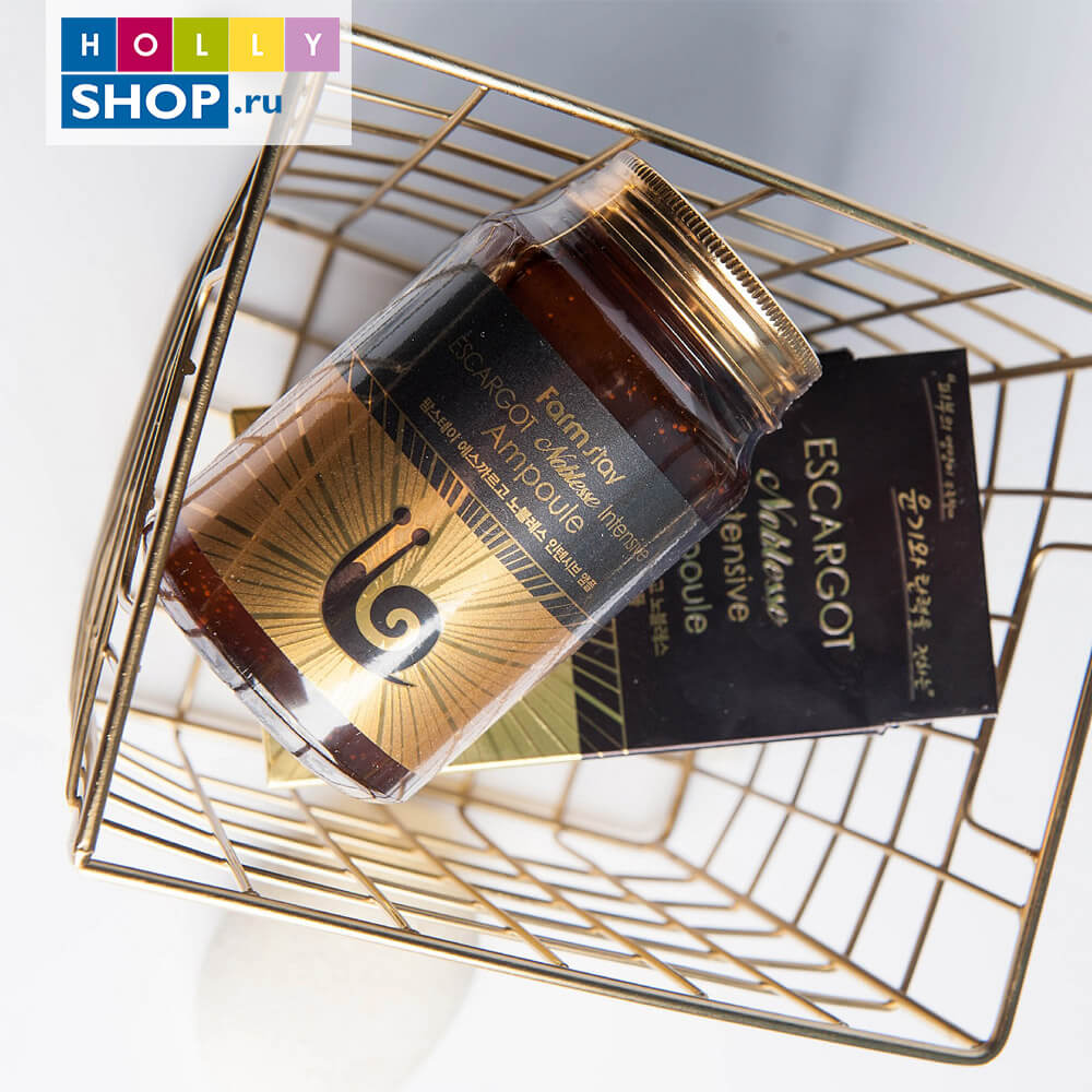 Многофункциональная ампульная сыворотка с муцином улитки FarmStay Escargot Noblesse Intensive Ampoule увлажняет, восстанавливает водно-жировой баланс, устраняет воспаления и покраснения, ускоряет регенерацию кожи, способствует разглаживанию морщин и повышает упругость кожи. В состав сыворотки входят два сильнейших компонента для полноценного ухода за кожей — фильтрат улиточного муцина (2,500 мг) и ферментированный экстракт галактомисиса.