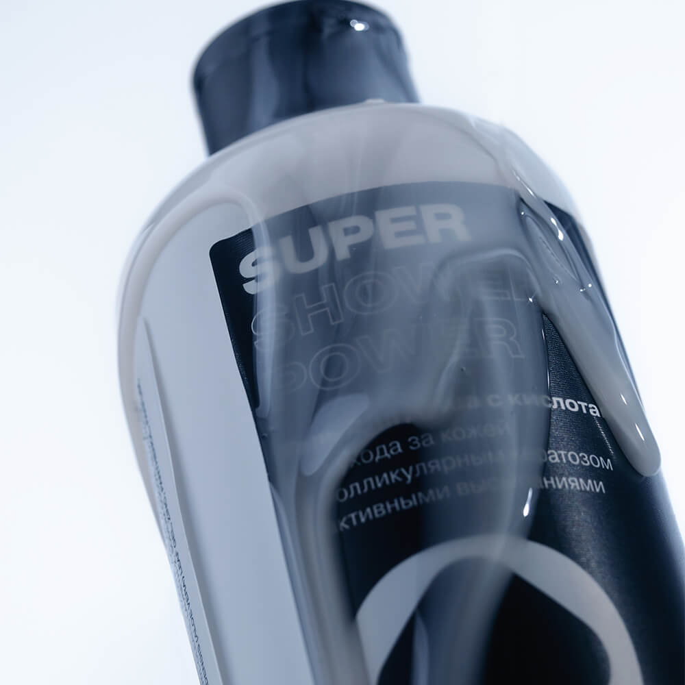 Усиленный отшелушивающий гель для душа с кислотами Openface Super Shower Power борется с высыпаниями на теле, предотвращает закупорку пор и воспалительный процесс, смягчает огрубевшие участки кожи. Оказывает антибактериальное, себорегулирующее и противовоспалительное действие. Средство активно отшелушивает, отлично подходит для кожи с акне на теле. Содержит 10% кислот: азелаиновую, гликолевую и молочную (AHA), салициловую (BHA), а также цинк и мягкие очищающие вещества. Увлажняющее действие обеспечивает пантенол и гель алоэ вера. Уровень pH ~4,0.