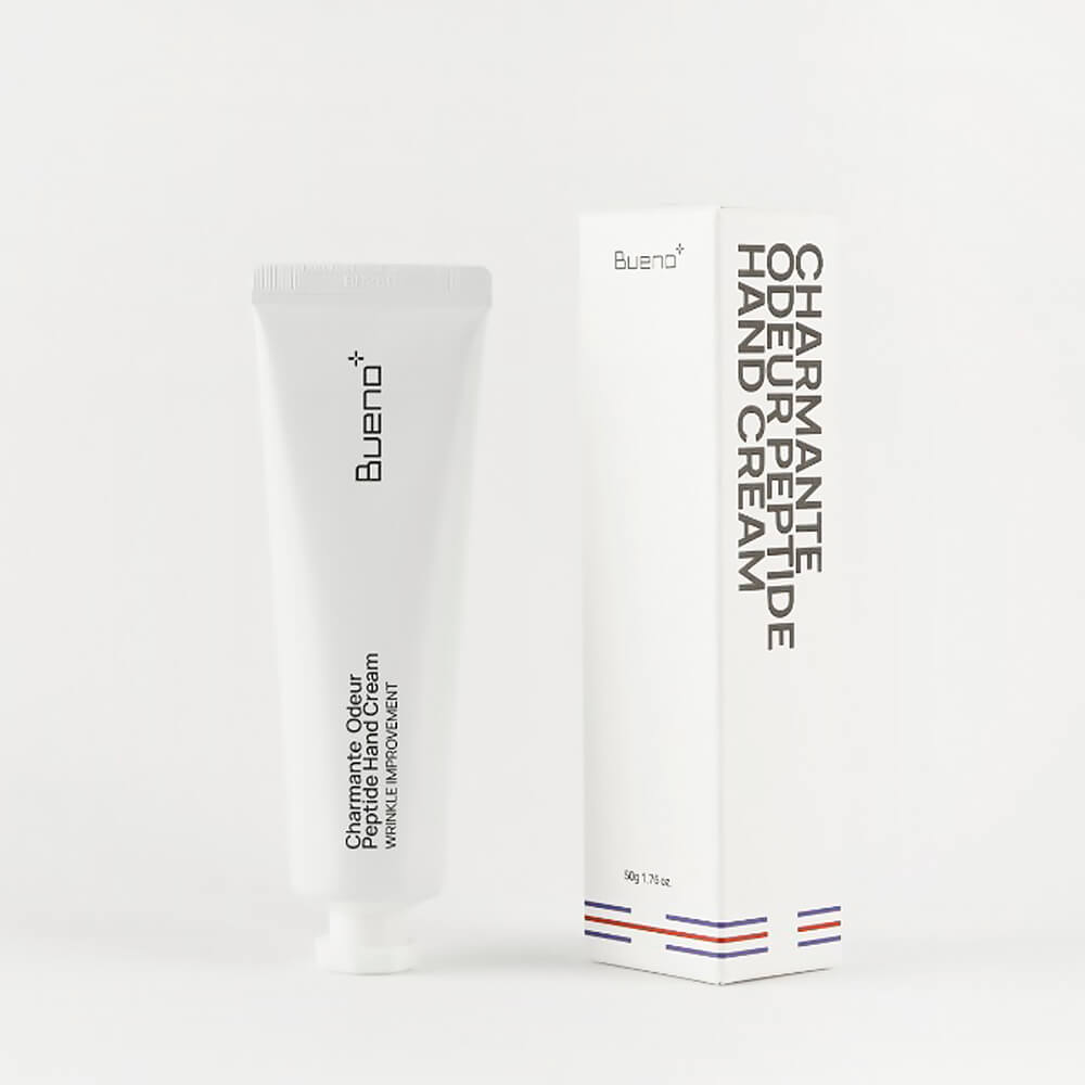 Парфюмированный крем для рук с пептидами Bueno Charmante Odeur Peptide Hand Cream глубоко увлажняет, делает кожу более плотной, нежной и бархатистой. Устраняет дряблость, разглаживает и улучшает тон. Содержит пептиды, церамиды и аденозин.