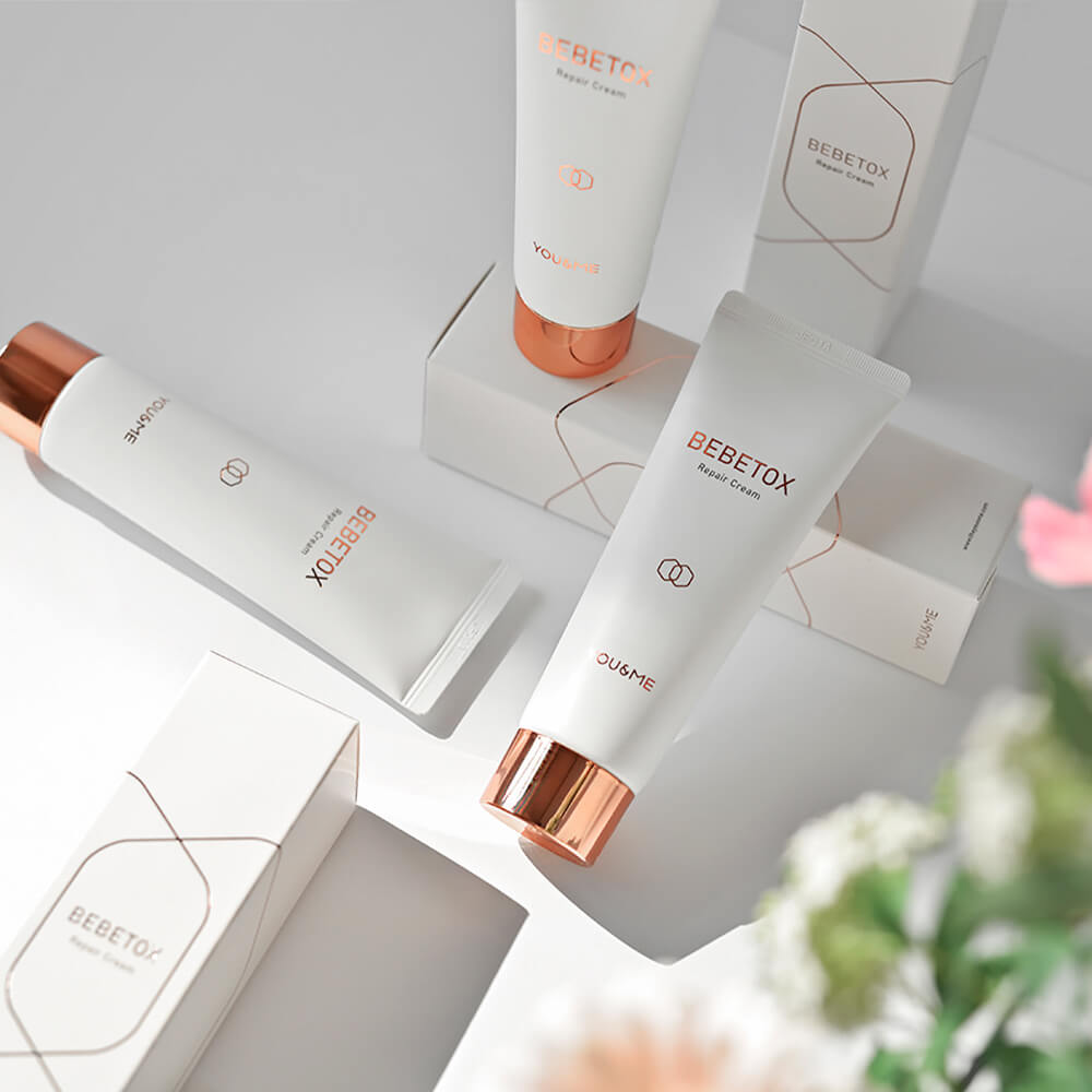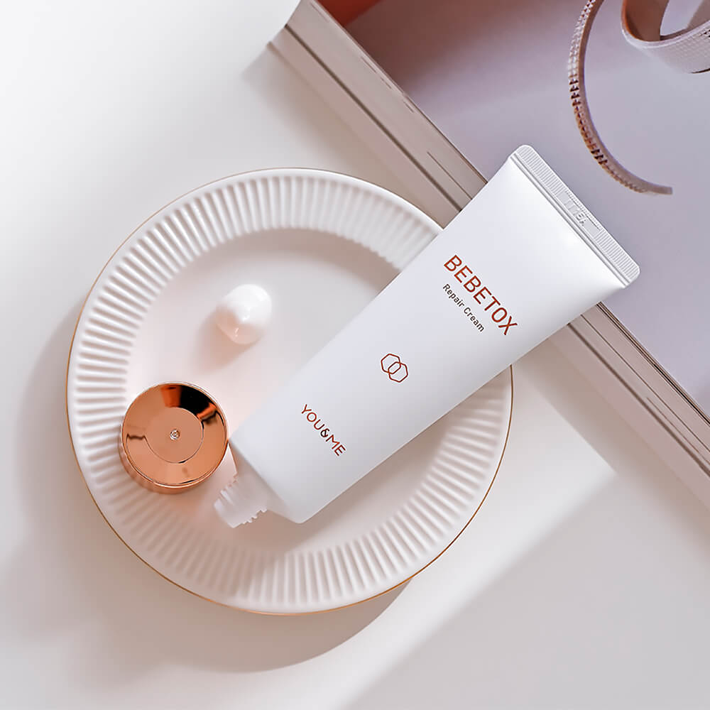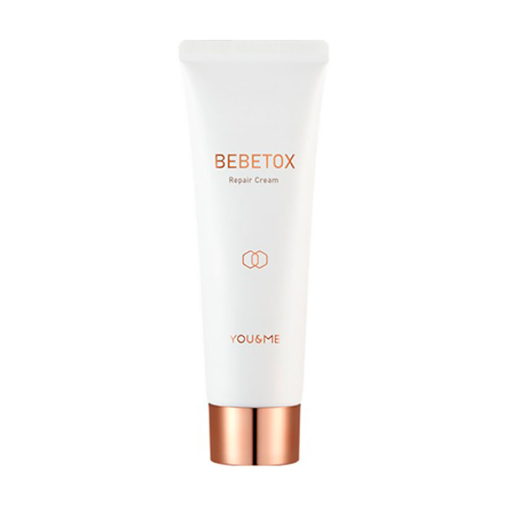 Восстанавливающий крем от морщин с пептидами You&Me Bebetox Repair Cream успокаивает, интенсивно увлажняет и питает, устраняет шелушение и сухость, а также оказывает мощный антивозрастной эффект за счёт комплекса пептидов в составе: разглаживает морщины, подтягивает и уплотняет кожу, придаёт эластичность и упругость. Средство восстанавливает защитный гидролипидный барьер, предотвращает появление раздражения и воспаления. Подходит для сухой и чувствительной кожи. Содержит комплексы Bebe Pentaide™ и UNM Skin Shield™, масло макадамии и ниацинамид.