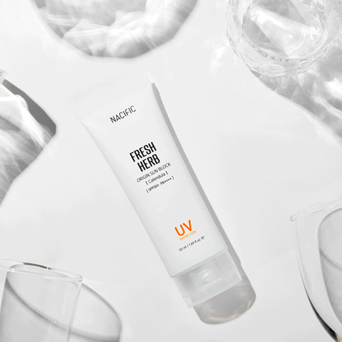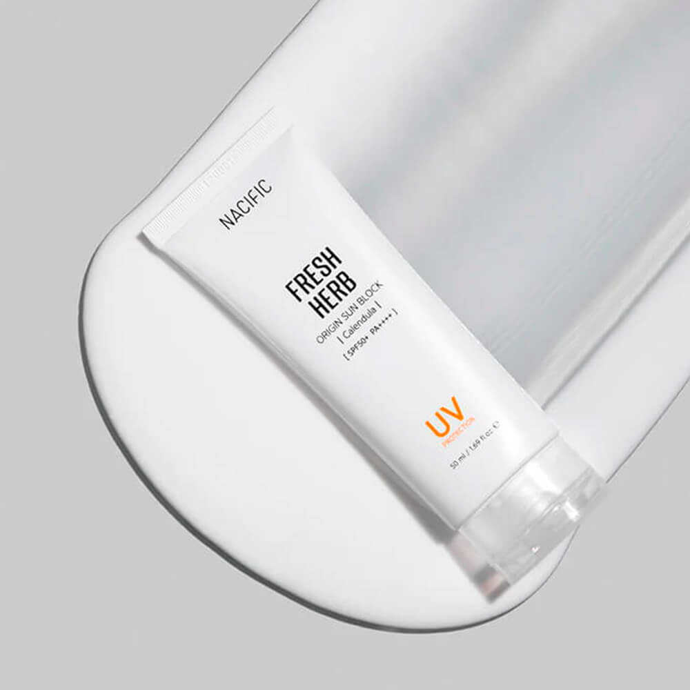 Освежающий санблок с календулой NACIFIC Fresh Herb Origin Sun Block Calendula SPF50+ PA++++ для чувствительной кожи. Лёгкая невесомая консистенция средства быстро впитывается, не оставляя липкости и жирного блеска, крем активно защищает кожу от агрессивного воздействия ультрафиолета, замедляет процессы старения и обладает успокаивающим действием. Содержит безопасный химический УФ-фильтр нового поколения, а также экстракты календулы, зелёного чая, лаванды и клюквы, масло бергамота.
