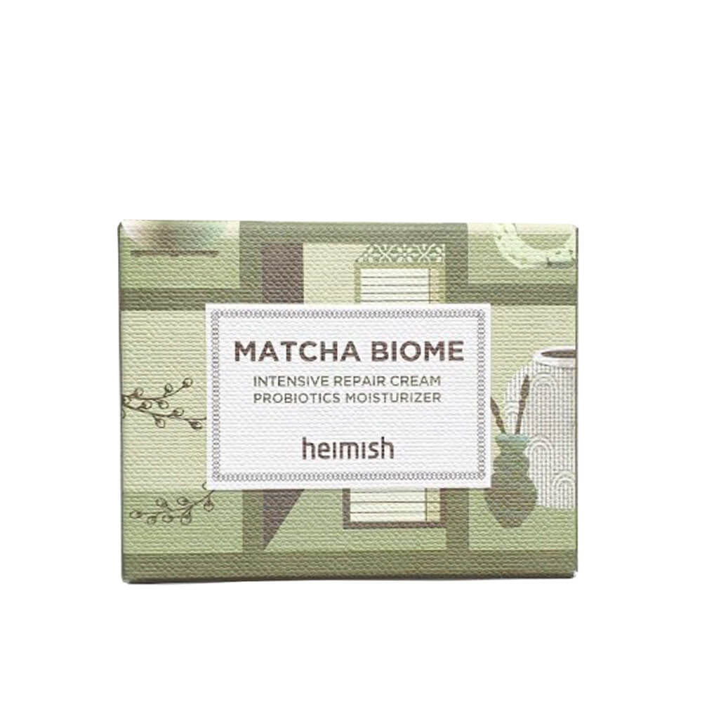 Восстанавливающий крем с матчей пробиотиками HeimishMatcha Biome Intensive Repair Cream увлажняет и успокаивает чувствительную и раздражённую кожу, укрепляет защитный барьер, заживляет и насыщает антиоксидантами. Слабокислотная формула с pH 5.5, содержит комплексMatcha Biome™, пантенол и ниацинамид, экстракты зелёного чая и центеллы. Не содержит спирта, парабенов, сульфатов и минеральных масел.