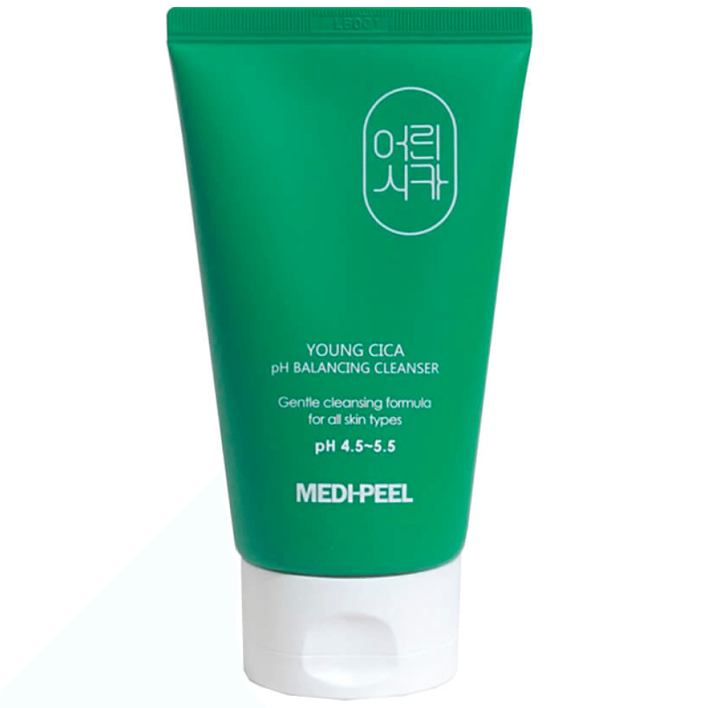Успокаивающая пенка для умывания на основе центеллы Medi-Peel Young Cica pH Balancing Cleanser бережно удаляет загрязнения, снимает раздражение и зуд, восстанавливает кожу и укрепляет защитный барьер. Средство избавляет от излишков кожного жира, удаляет макияж, осветляет сальные нити и предотвращает образование чёрных точек. Содержит лимонную и LHA-кислоту, экстракт розмарина, ромашки и мяты, без красителей и отдушек.