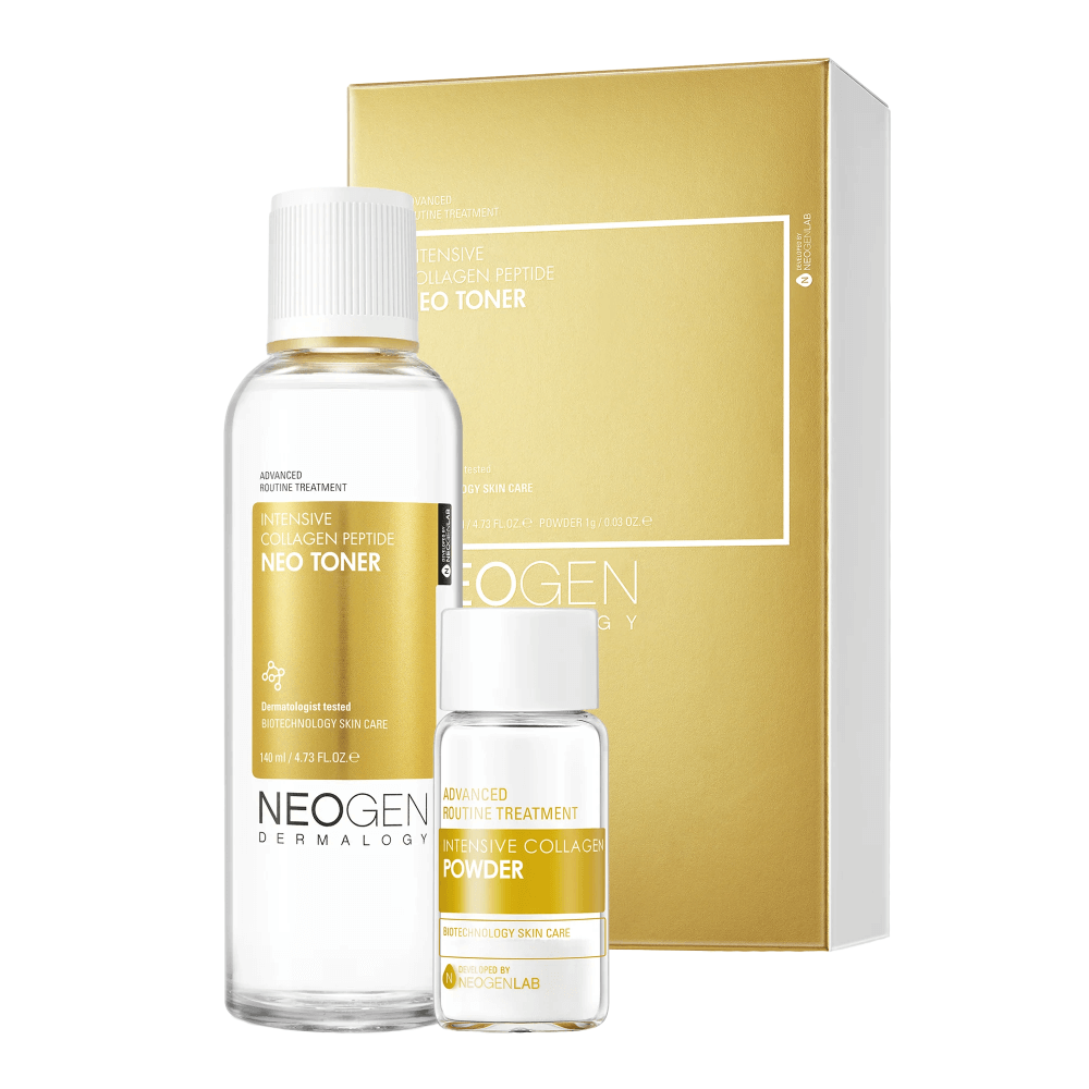 Пептидный тонер с коллагеновым порошком Neogen Dermalogy Collagen Peptide Neo Toner делает кожу более упругой и эластичной, уменьшает видимость морщин и разглаживает рельеф. Глубоко питает и увлажняет и поддерживает оптимальный уровень увлажненности. В комплекте с тонером идет 100% коллагеновый порошок, который добавляется в средство перед первым применением.
