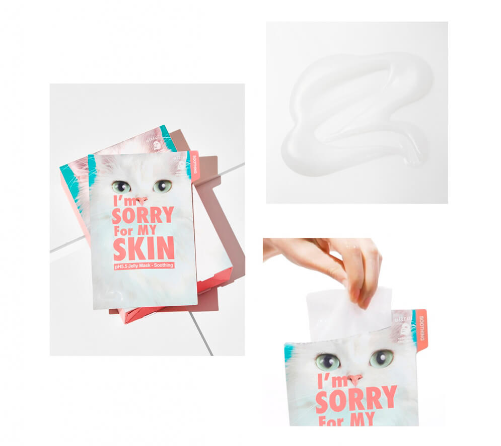 Тканевая маска с центеллой I’m Sorry For My Skin pH5.5 Jelly Mask-Soothing (Cat) быстро успокаивает кожу, снимает раздражения и покраснения, предотвращает появление воспалений. Интенсивно увлажняет, снимает отечность и устраняет признаки усталости, выравнивает тон и текстуру кожи, улучшает цвет лица и наполняет здоровым сиянием. Имеет нейтральный pH 5.5, подходит для чувствительной кожи.