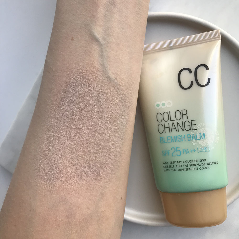 Матирующий СС-крем с цветовыми капсулами Welcos Lotus Color Change Blemish Balm SPF25 PA++ — уникальное средство, которое способно менять цвет и подстраиваться под ваш тон кожи, скрывая несовершенства микрорельефа. СС-крем в тубе имеет нежно-зеленый оттенок: после нанесения он светлеет благодаря множеству микрокапсул с пигментом, а затем приобретает телесный цвет, который идеально совпадает с натуральным оттенком кожи. Помимо выравнивания тона, СС-крем маскирует красноту, пигментацию, сосуды. Обладает матовым финишем. Очень комфортен в использовании и практически не ощутим на лице.