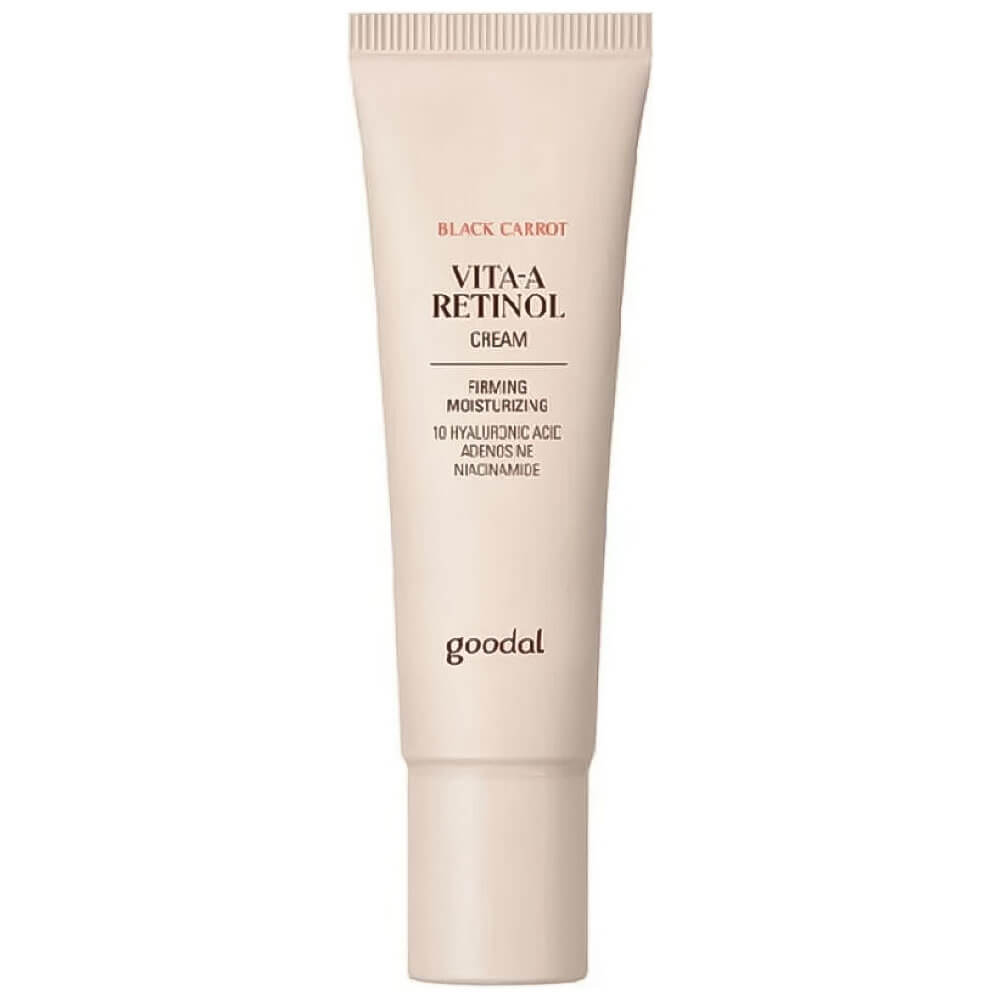Крем с ретинолом и чёрной морковью Goodal Black Carrot Vita-A Retinol Firming Cream эффективен в профилактике первых возрастных изменений и замедляет процессы старения. Продукт восстанавливает тонус и тургор тканей, повышает упругость и эластичность. Выравнивает тон и текстуру кожи. Содержит 10 видов гиалуроновой кислоты, экстракт сои, комплекс масел и аденозин.