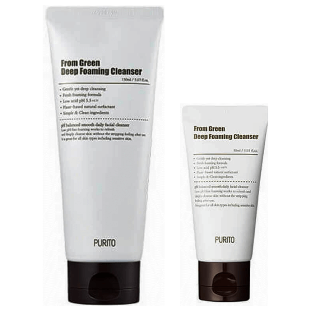 Пенка для умывания Purito From Green Deep Foaming Cleanser мягко и бережно очищает кожу от макияжа и прочих загрязнений. Имеет нейтральный уровень pH, а значит не сушит и не стягивает кожу после умывания. Содержит экстракты центеллы азиатской и зеленого чая, которые оказывают успокаивающее действие на кожу, снимают раздражение, тонизируют и обеспечивают антиоксидантный эффект. Подходит для всех типов кожи, в том числе и для чувствительной кожи с куперозом.