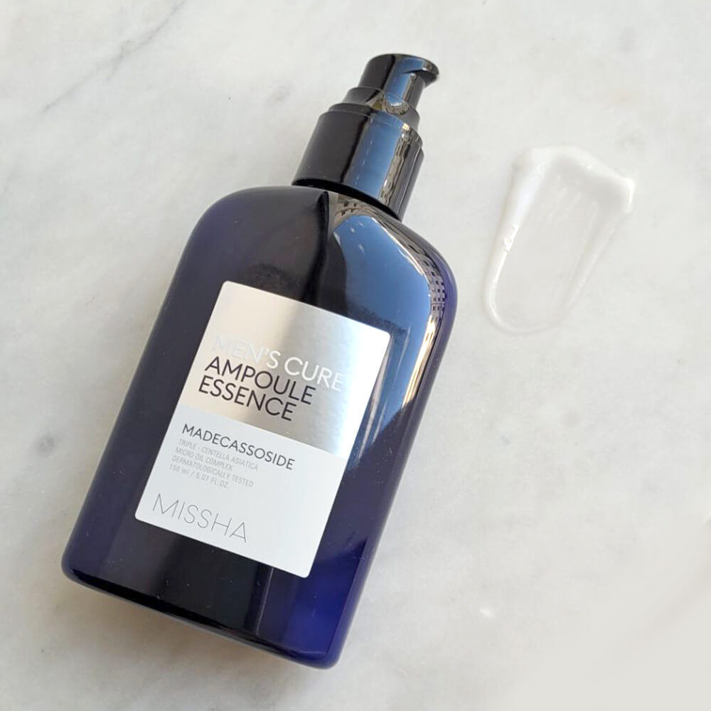 Восстанавливающая эссенция для мужчин с центеллой MIssha Men's Cure Ampoule Essence успокаивает и смягчает кожу, снимает раздражение и покраснение, повышает эластичность, питает и увлажняет, устраняя сухость. Продукт восстанавливает, наполняет кожу энергией и жизненной силой, повышает барьерные функции. Содержит 3 вида центеллы азиатской, комплекс микромасел, ниацинамид, аденозин и экстракт киноа.
