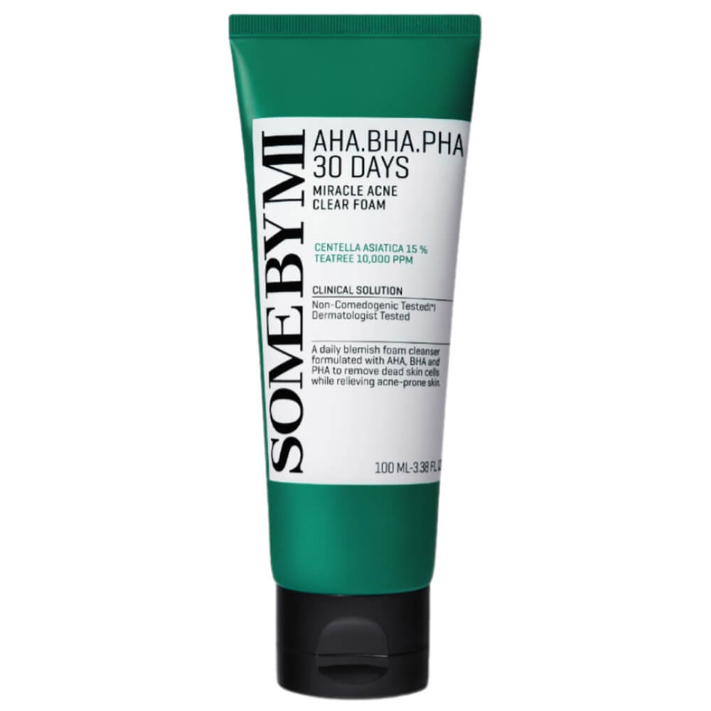 Очищающая пенка для проблемной кожи Some By Mi AHA-BHA-PHA 30 Days Miracle Acne Clear Foam с комплексом кислот и центеллой азиатской. Средство отлично борется с высыпанием, лечит акне, удаляет все загрязнения, излишки кожного сала и шелушения. Мягко полирует и смягчает кожу, а также обладает успокаивающим действием.