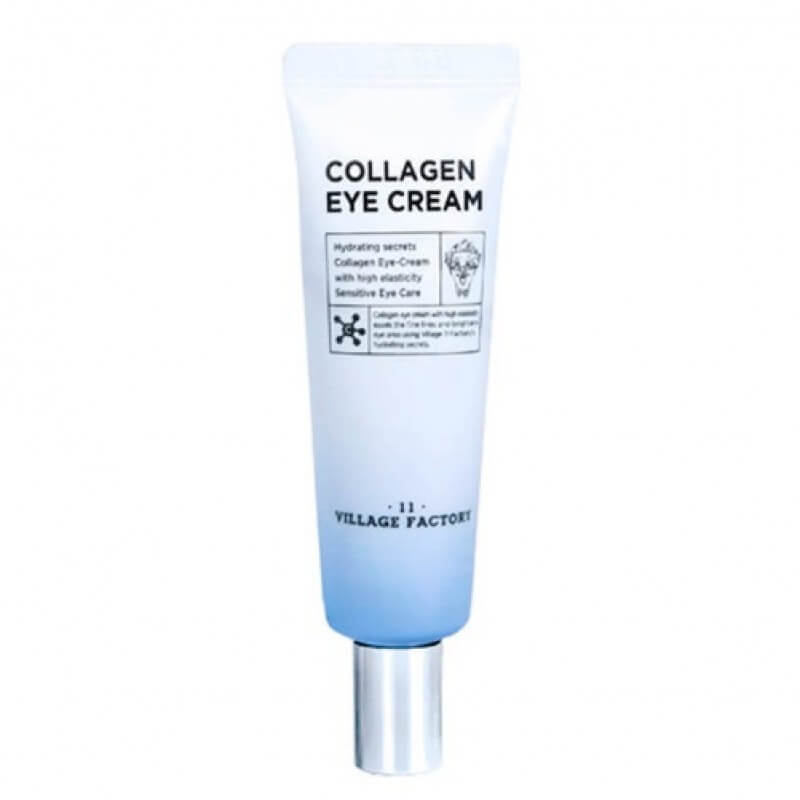 Крем для век с гидролизованным коллагеном Village 11 Factory Collagen Eye Cream прекрасно увлажняет кожу, осветляет тёмные круги под глазами, снимает отёчность и разглаживает мимические морщинки. Средство является отличной профилактикой появления возрастных морщин.