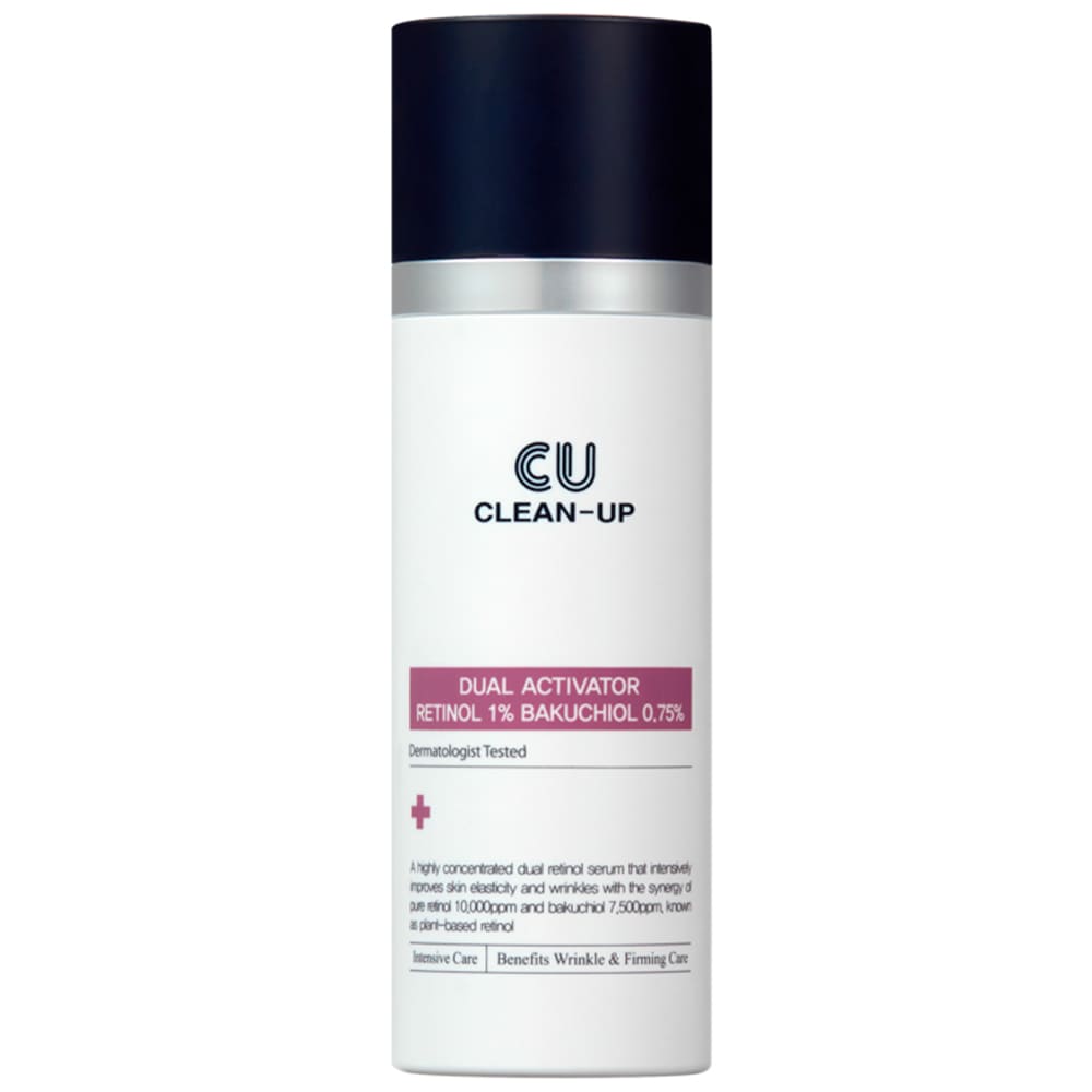 Интенсивная сыворотка с 1% ретинола и бакучиолом CUSKIN Dual Activator Retinol 1% Bakuchiol 0.75% оказывает мощное антивозрастное и анти-акне действие за счёт высокой концентрации чистого ретинола — компонента с доказанной эффективностью, который запускает обновление клеток кожи. Средство разглаживает морщины, сужает расширенные поры и нормализует себовыделение, смягчает грубую текстуру кожи и осветляет пигментные пятна. Выравнивает тон, повышает упругость и эластичность, сглаживает рельеф и замедляет старение. Формула, обогащённая липосомами, работает быстрее и эффективнее за счёт доставки активов глубоко в кожу. Содержит 1% ретинола, 0,75% бакучиола, 6 пептидов, PHA-кислоту, аденозин, аллантоин и феруловую кислоту.
