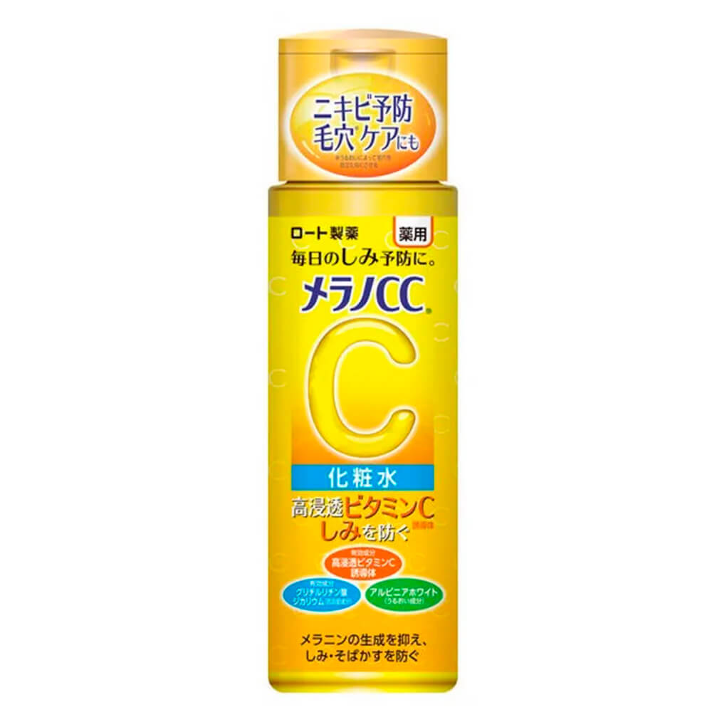 Лосьон от пигментации с витаминами C и E Melano CC Pure Vitamin C Toner Lotion отбеливает пигметные пятна, вызванные УФ-излучением и возрастными изменениями, осветляет веснушки, снижает жирность кожи, избавляет от следов постакне, разглаживает рельеф и придает упругость. Содержит лимонную кислоту, имеет цитрусовый аромат. Подходит для ежедневного применения.