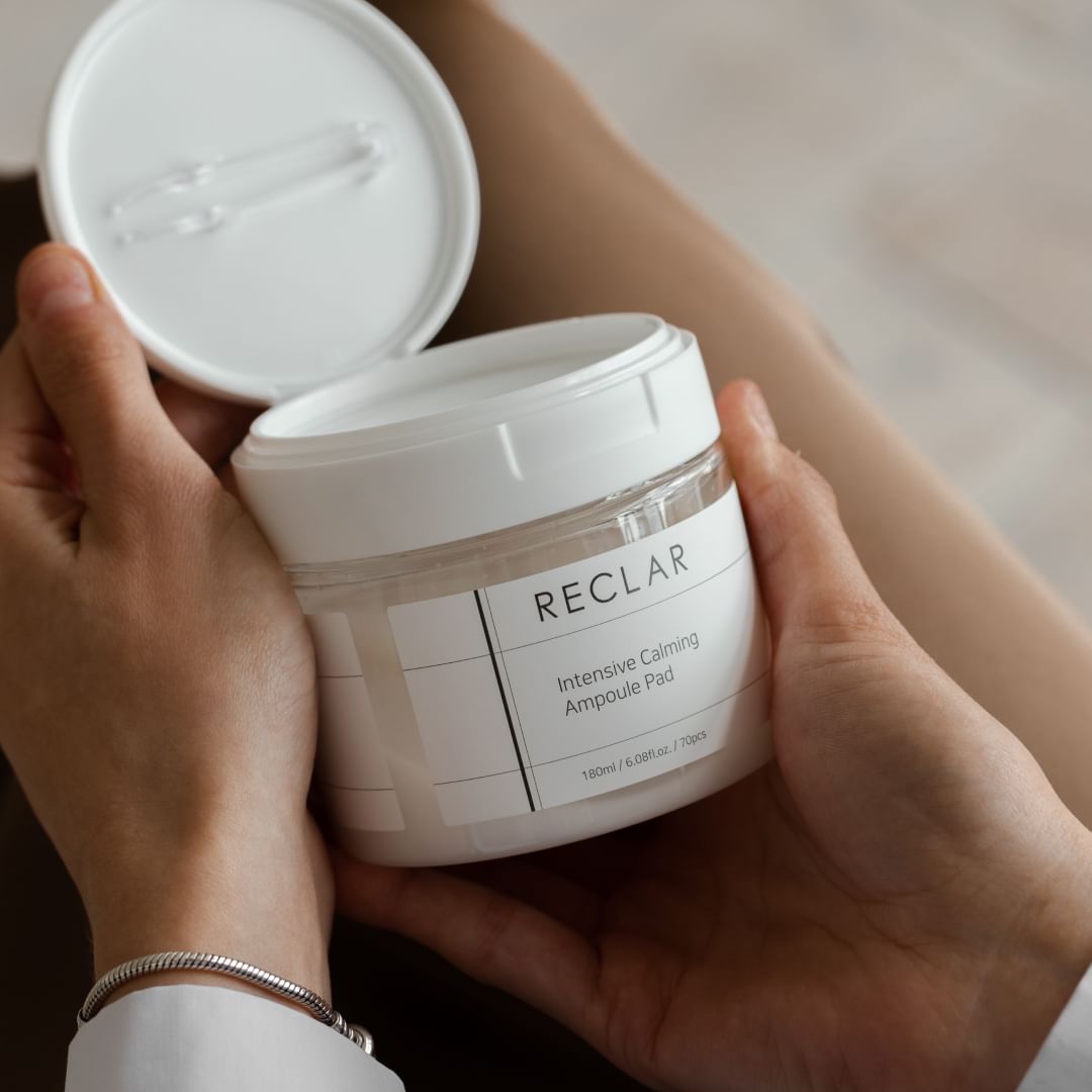 Успокаивающие ампульные пэды Reclar Intensive Calming Ampoule Pad снимают раздражение и покраснение, освежают и увлажняют кожу, смягчают, укрепляют защитный гидролипидный барьер. Отлично восстанавливают после отшелушивания и других травмирующих процедур, устраняет шелушение и избавляет от чувства стянутости. Пэды щедро пропитаны эссенцией, отлично прилегают к коже, не сползают. Содержат церамиды, трегалозу, гиалуроновую кислоту, а также экстракты центеллы, ромашки, зелёного чая и розмарина, масло сои.