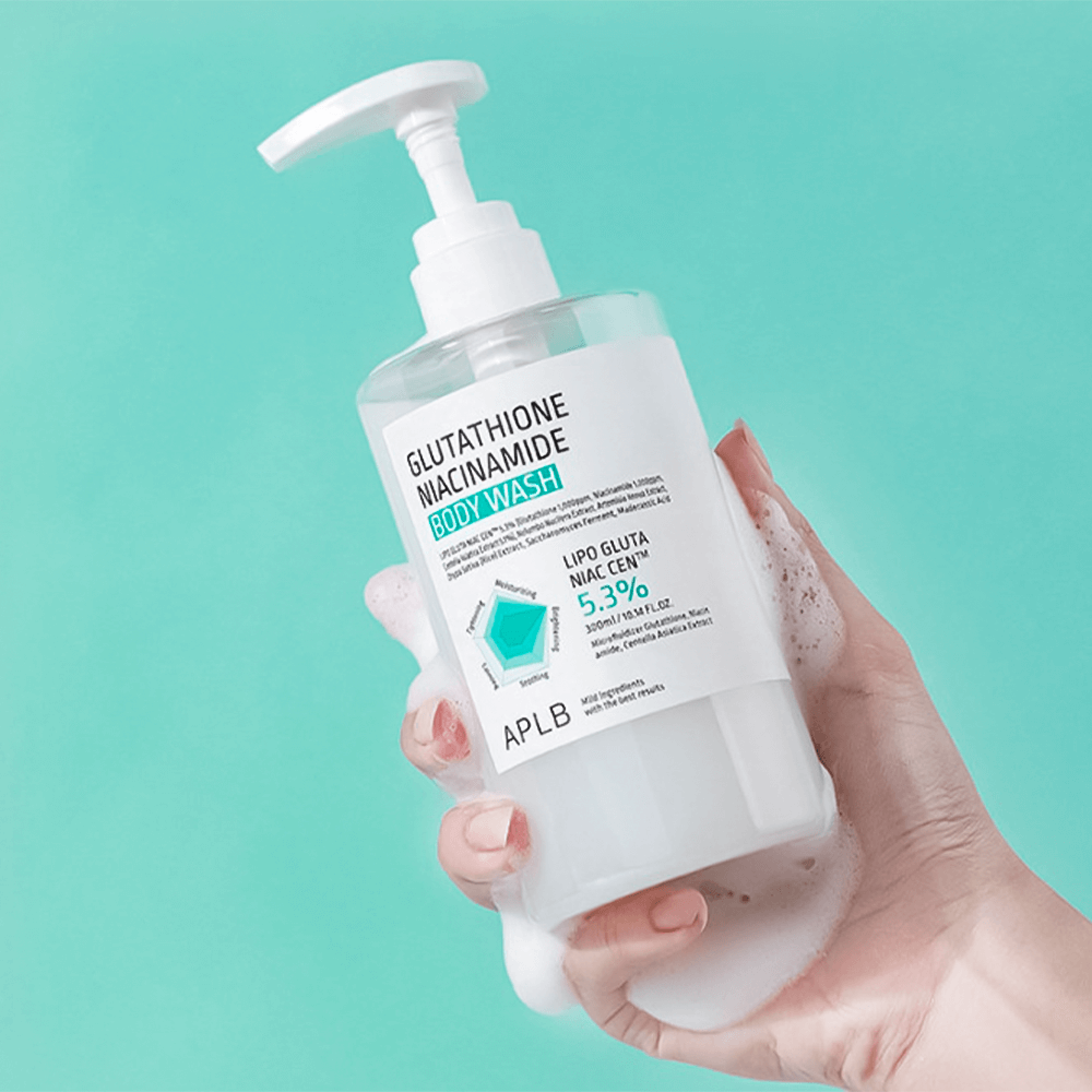 Гель для душа с глутатионом и ниацинамидом APLB Glutathione Niacinamide Body Wash эффективно очищает кожу от загрязнений и излишков себума, не нарушая гидролипидную мантию. Благодаря комплексу глутатиона и ниацинамида осветляет пигментацию, снижает жирность, сужает поры. Содержит комплекс центеллы азиатской, экстракт полыни, лотоса, риса. Гипоаллергенная формула не содержит отдушек.