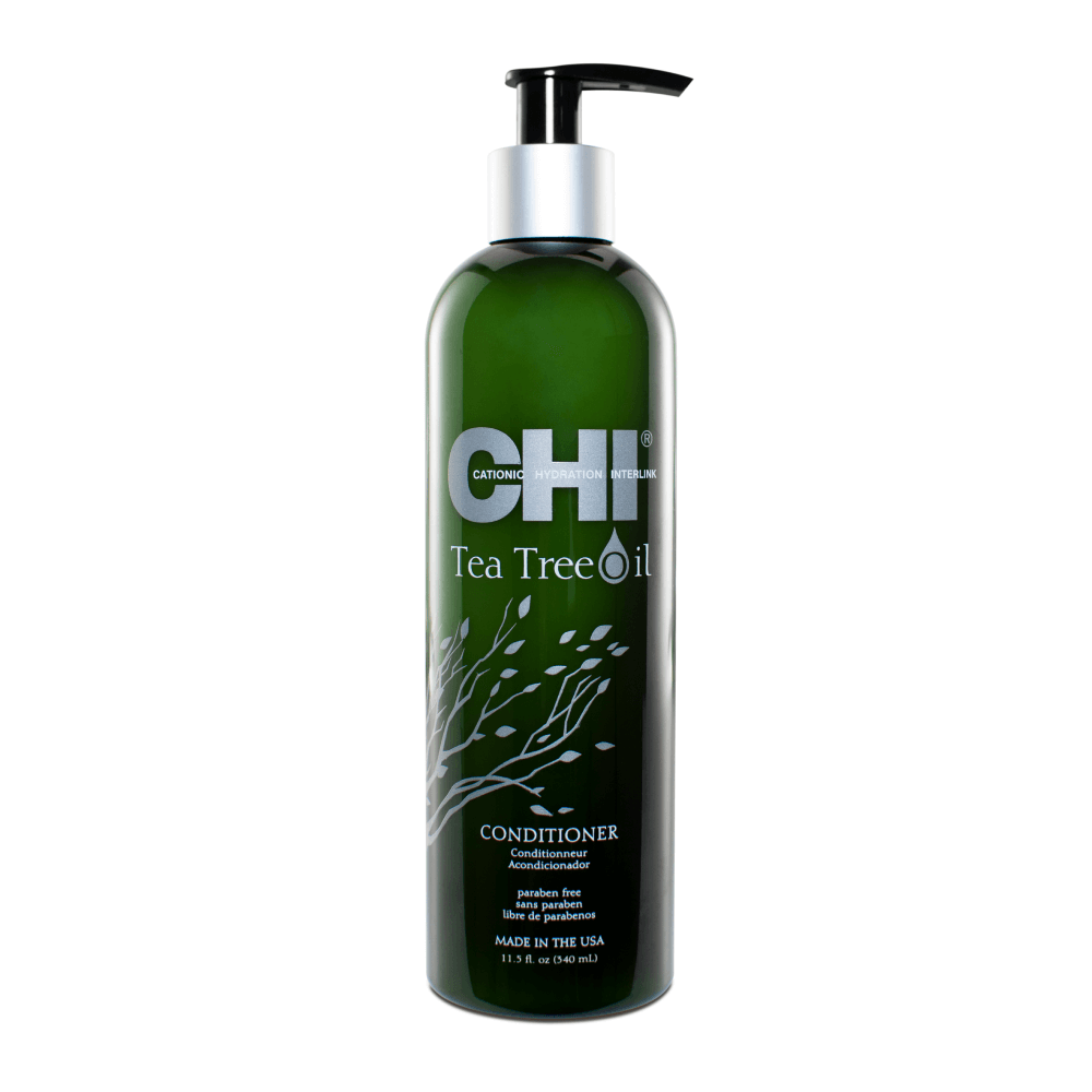 Кондиционер для чувствительной кожи головы с маслом чайного дерева CHI Tea Tree Oil Conditioner обладает противовоспалительным и успокаивающим действием, помогает избавиться от зуда, сухости и шелушение. Снижает выделения кожного сала, продлевает чистоту и свежесть волос. Содержит гидролизованный шёлк, масло перечной мяты, лаванды и оливы.