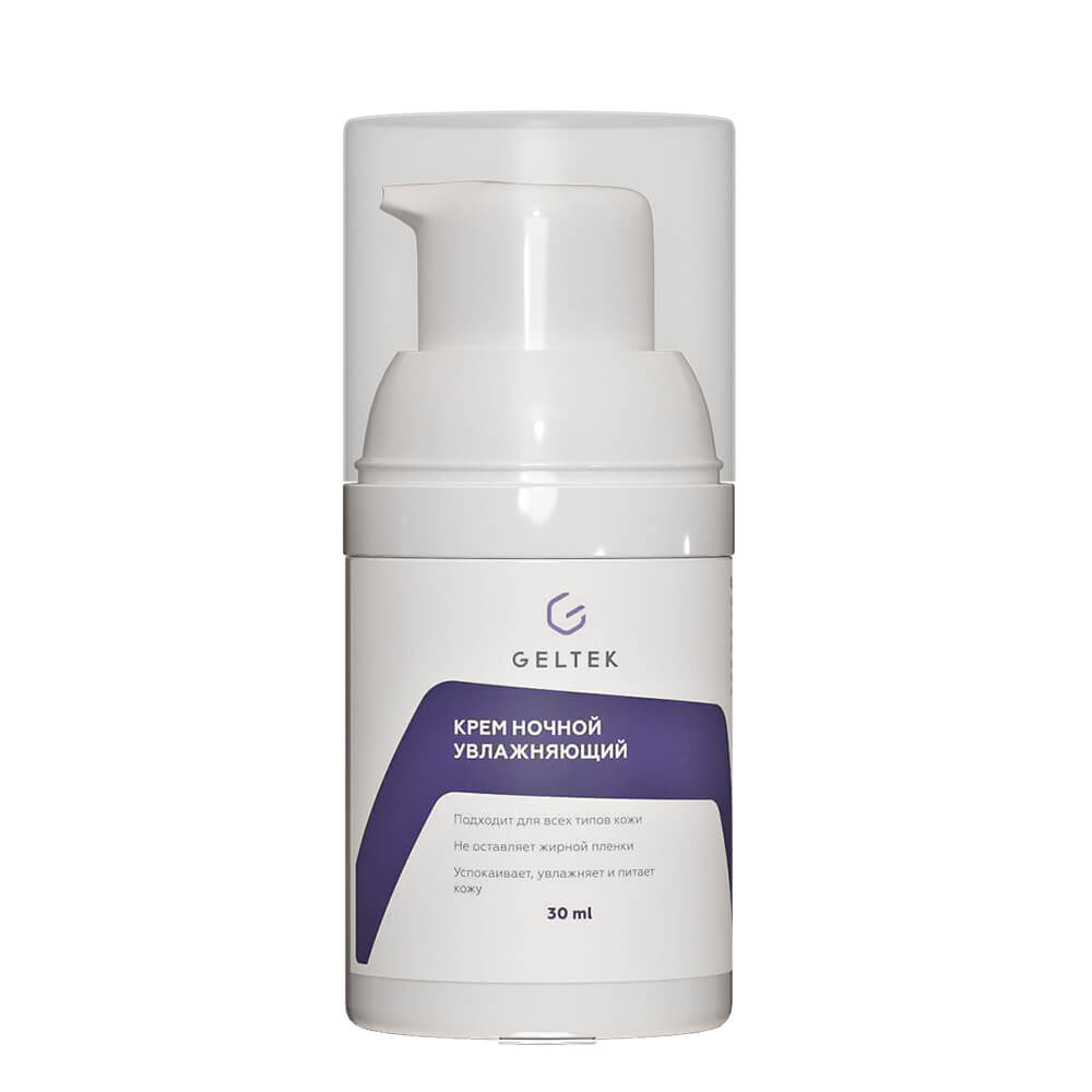 Ночной увлажняющий крем с пантенолом и протеинами шёлка Geltekсмягчает, питает и восстанавливает кожу во время сна, замедляет старение и поддерживает эластичность. Продукт предотвращает сухость, успокаивает и стимулирует восстановление, отлично подходит для вечернего ухода для всех типов кожи. Содержит масла сладкого миндаля и ши, протеины шёлка, пантенол, гиалуроновую кислоту и сок листьев алоэ.