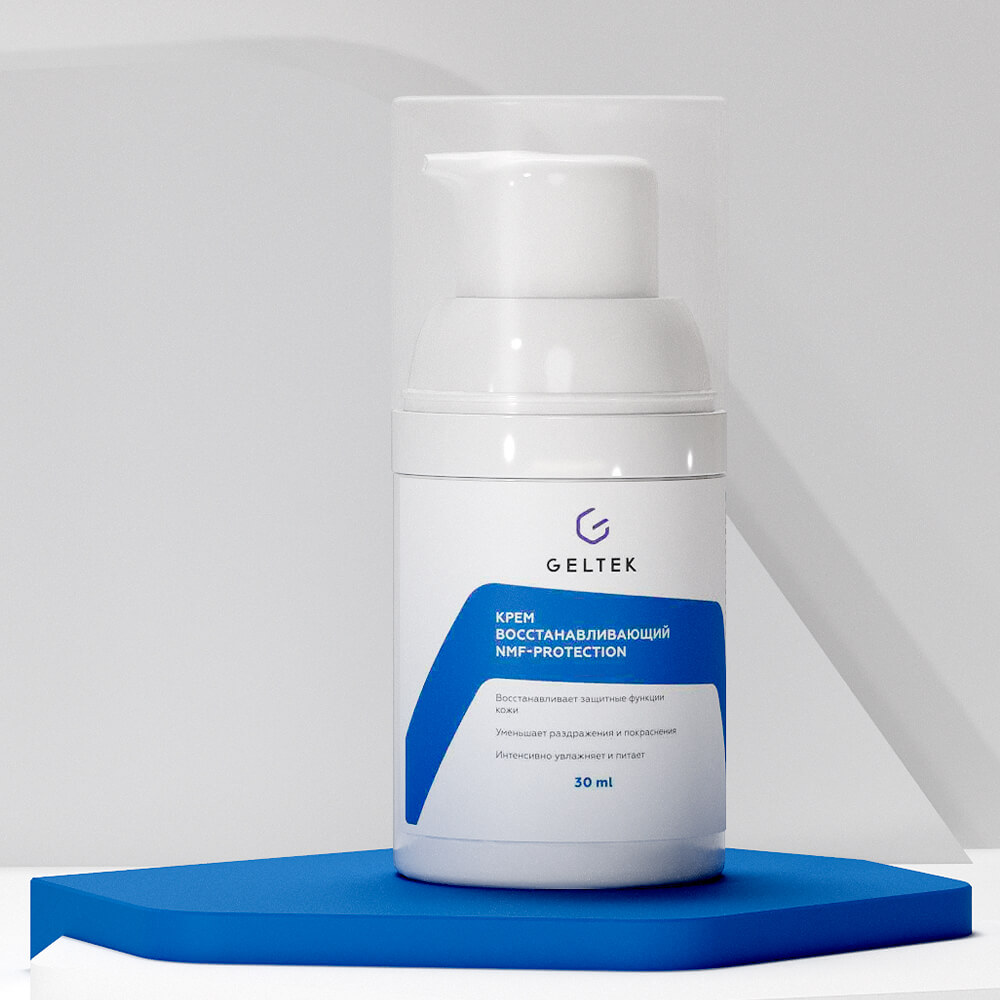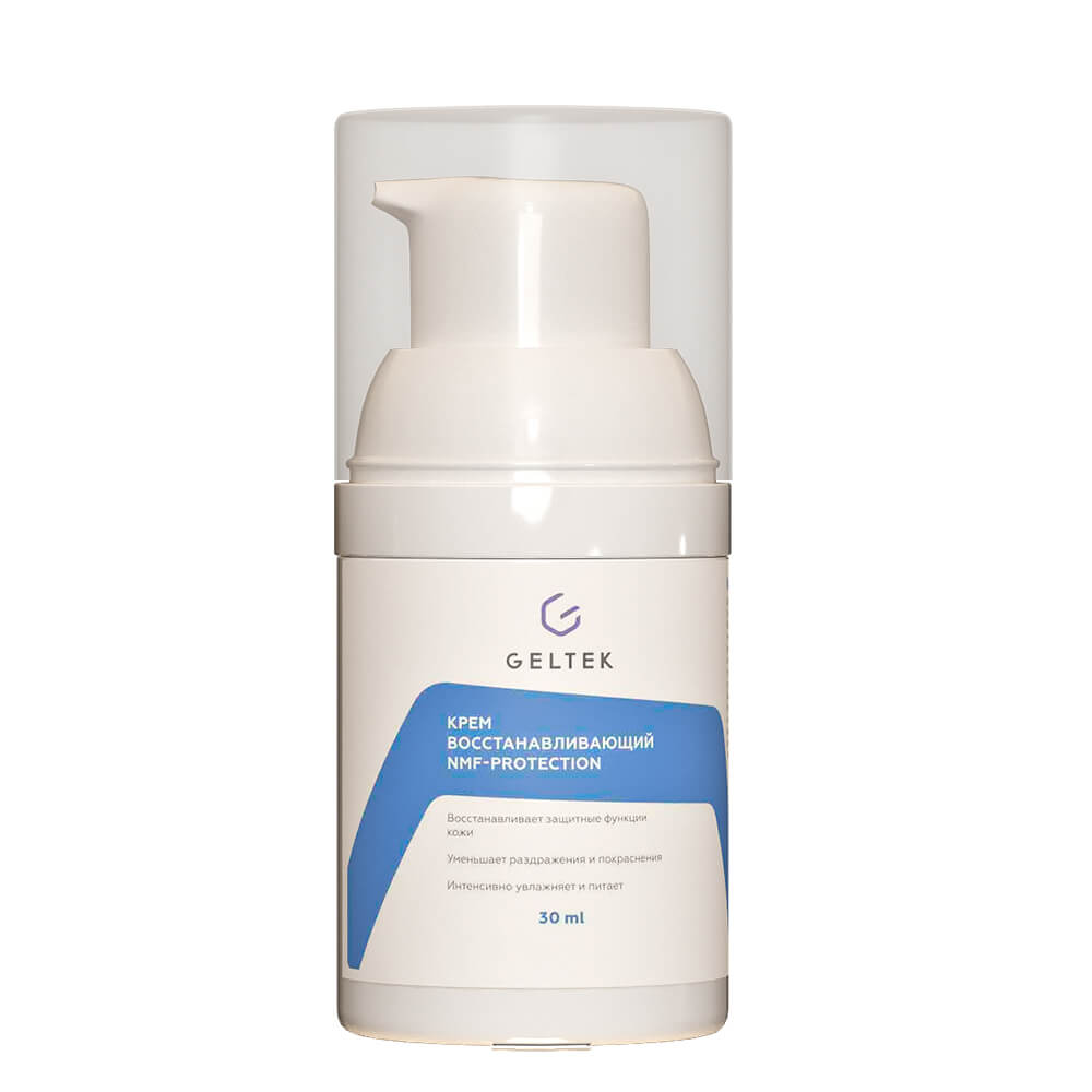 Ламеллярный восстанавливающий крем с аминокислотами GeltekNMF Protection увлажняет и смягчает кожу, разглаживает микрорельеф, предотвращает сухость и шелушение. Средство восстанавливает гидролипидный барьер, способствует удержанию влаги, нормализует микробиоту, придаёт эластичность, делает кожу нежной и бархатистой. Содержит компоненты натурального увлажняющего фактора кожи (NMF) — аминокислоты, а также масло ши, сквалан, комплексы Biophilic™ и SymRepair®100, токоферол.