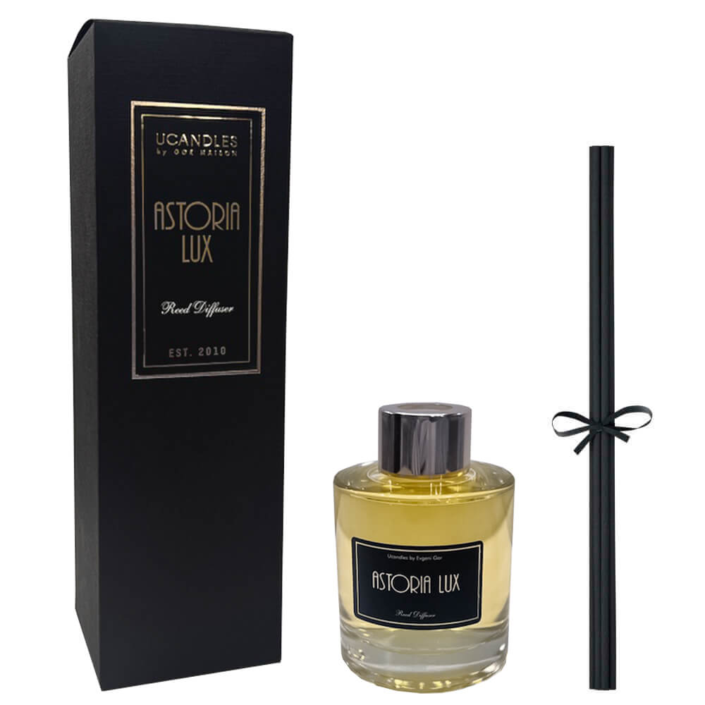Диффузор с благородным ароматом кедра и сандала Ucandles Reed Diffuser Astoria Luxe обладает утончённой парфюмерной композицией с древесными нотами. Он навевает воспоминания о дорогом отеле, куда вы приехали в отпуск.