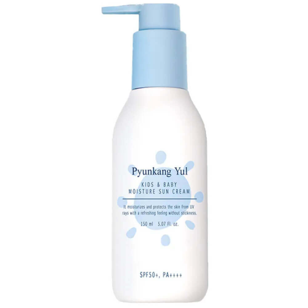 Увлажняющий солнцезащитный крем для детей Pyunkang Yul Kids & Baby Moisture Sun Cream SPF50+ PA++++ абсолютно безопасен для нежной кожи ребёнка, не провоцирует зуда и раздражения. В составе химические фильтры нового поколения, которые являются наиболее мягкими по действию и не требуют частого обновления. Содержит масло шиповника и семян зелёного чая, экстракт иерихонской розы и гиалуроновую кислоту.
