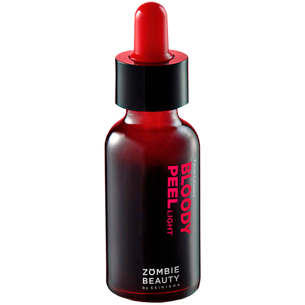 Мягкая пилинг-сыворотка с кислотами SKIN1004 Zombie Beauty Bloody Peel Light — деликатная версия знаменитой кровавой пилинг-сыворотки SKIN1004, которая содержит меньшую концентрацию кислот (8%), за счёт чего хорошо отшелушивает, но действует более бережно. Средство удаляет ороговевшие частицы кожи, избытки кожного сала и загрязнения, очищает поры, уменьшает видимость пигментации и выравнивает тон. Содержит 8% гликолевой AHA-кислоты, салициловую BHA-кислоту, PHA- и LHA-кислоты, а также ниацинамид, экстракты томата, яблока, свёклы, граната и алоэ вера.