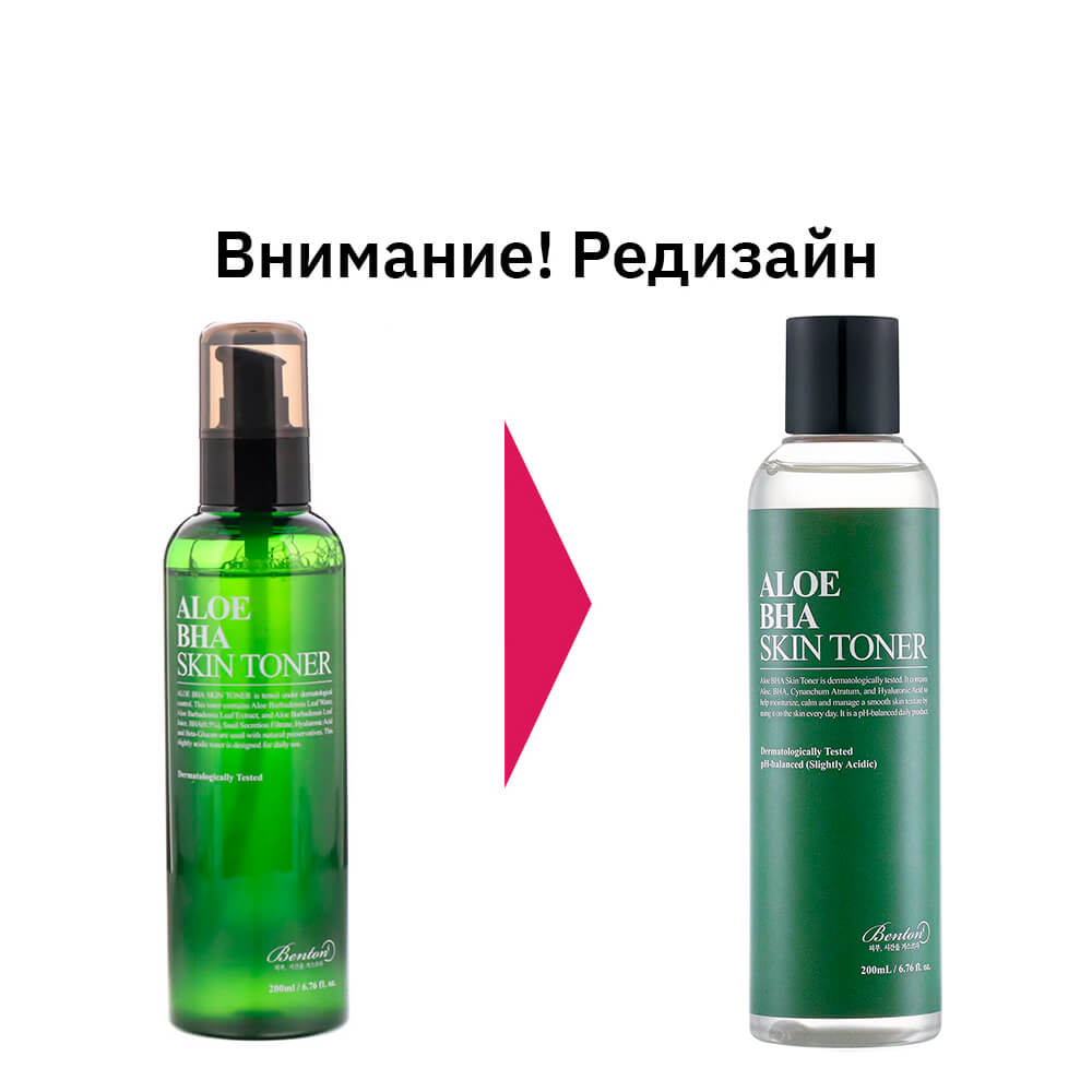 Обновляющий тонер с алоэ и BHA-кислотой Benton Aloe BHA Skin Toner бережно отшелушивает ороговевшие клетки, запускает процессы обновления и заживления, выравнивает тон. Заживляет воспаления, предупреждает появление угревой сыпи и акне. Основу средства составляет вода листьев алоэ. Содержит муцин улитки, салициловую кислоту (0,5%) и растительные экстракты.