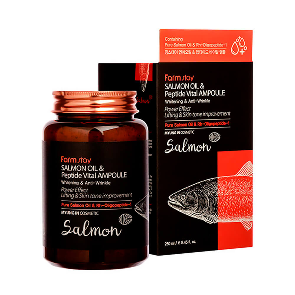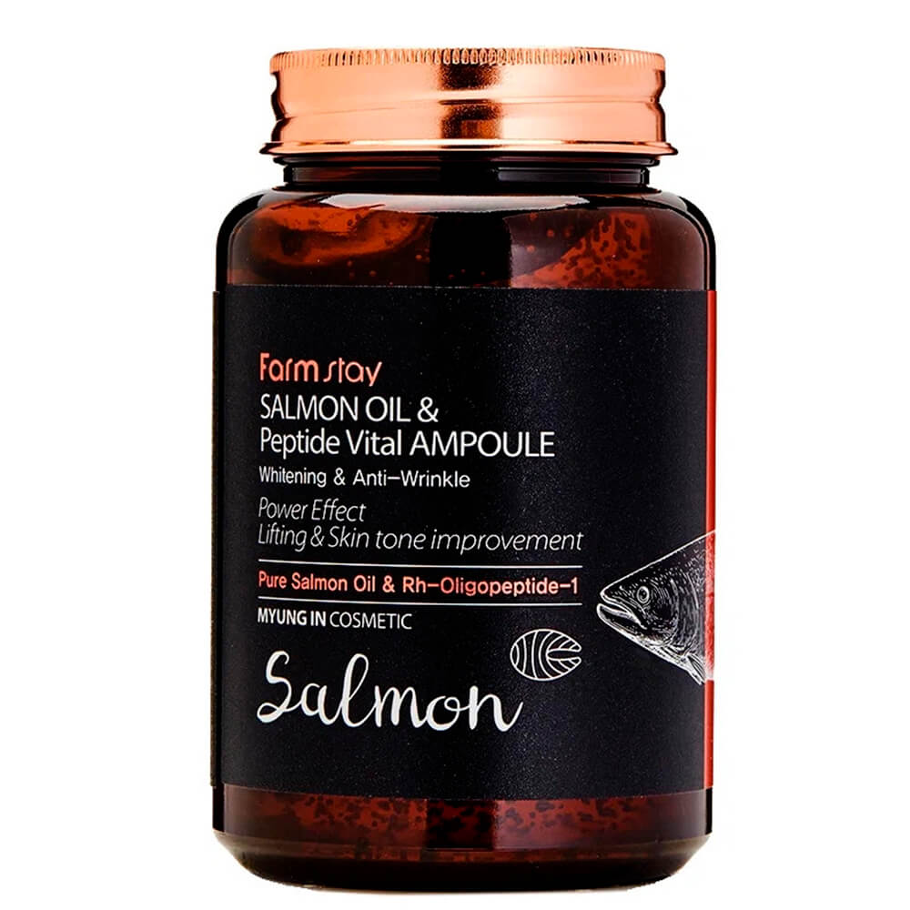 Антивозрастная ампула с лососевым маслом и EGF FarmStay Salmon Oil & Peptide Vital Ampoule замедляет признаки первых возрастных изменений, уменьшая глубину морщин и повышая эластичность кожи. Восполняет недостаток влаги, выравнивает тон и защищает от свободных радикалов, поддерживая упругость и гладкий рельеф. Содержит лососевое масло, эпидермальный фактор роста rh-Oligopeptide-1, ниацинамид, пантенол, 15 аминокислот, витамин C и трегалозу.