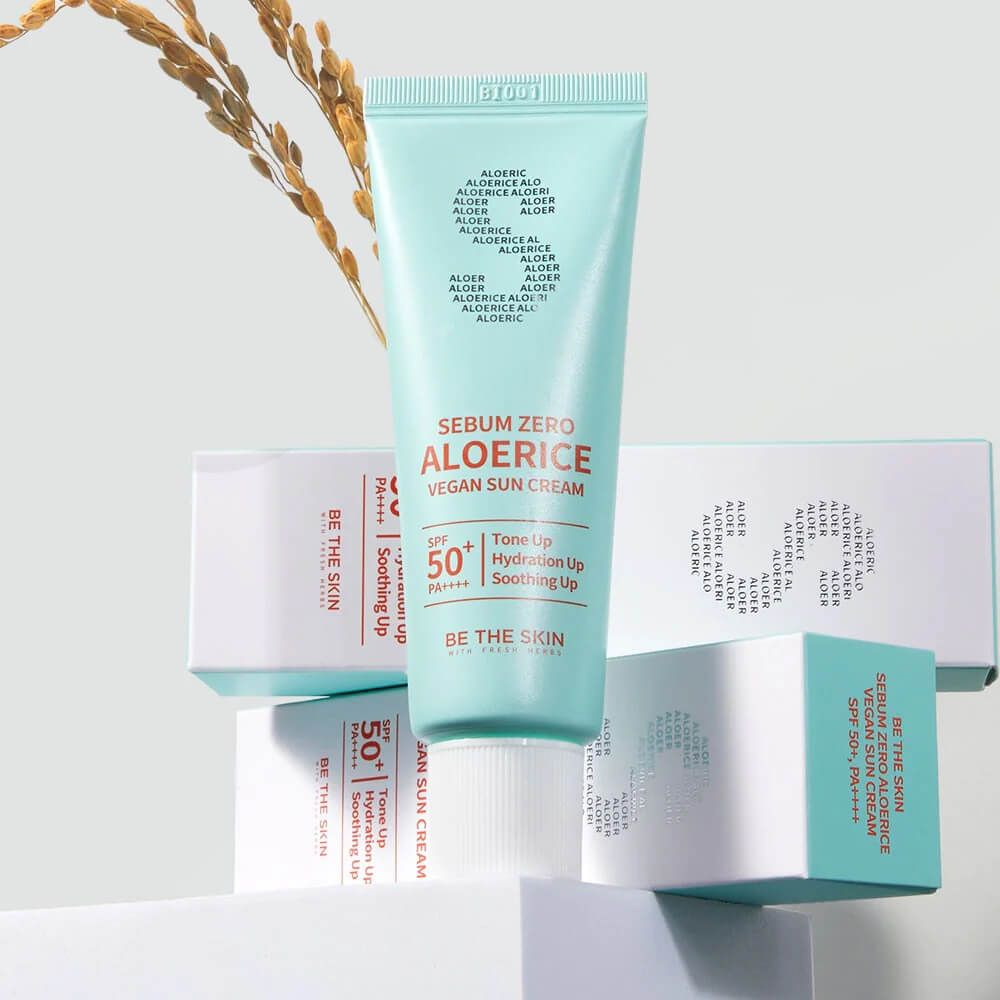 Себорегулирующий солнцезащитный крем Be The Skin Sebum Zero Aloerice Vegan Sun Cream SPF50+ PA++++с лёгкой невесомой текстурой комфортно распределяется по коже и быстро впитывается. Отлично освежает, не оставляет липкости и жирного блеска. Химические фильтры нового поколения надёжно защищают от агрессивного воздействия солнечных лучей на протяжении 6-8 часов в условиях мегаполиса. Сбалансированный состав хорошо увлажняет, успокаивает воспаления и снимает красноту, регулирует работу сальных желёз и матирует. Содержит экстракт алоэ веры, мяты и корицы, глицерил глюкозид.