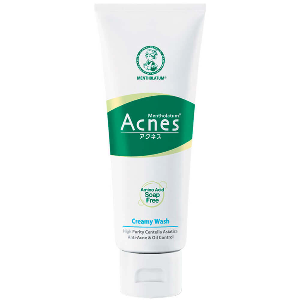 Нежная очищающая пенка для проблемной кожи с BHA-кислотой Mentholatum Acnes Creamy Wash мягко смывает загрязнения, очищает поры от излишков себума, устраняет ороговевшие частицы и избавляет от остатков макияжа, не стягивает и не вызывает сухости. Предотвращает закупорку пор, появление прыщей и чёрных точек. Нормализует выработку кожного сала, делает кожу матовой и мягкой. Содержит салициловую BHA-кислоту, бутил авокадат, витамины C и E, экстракт центеллы азиатской и 3 её производных.