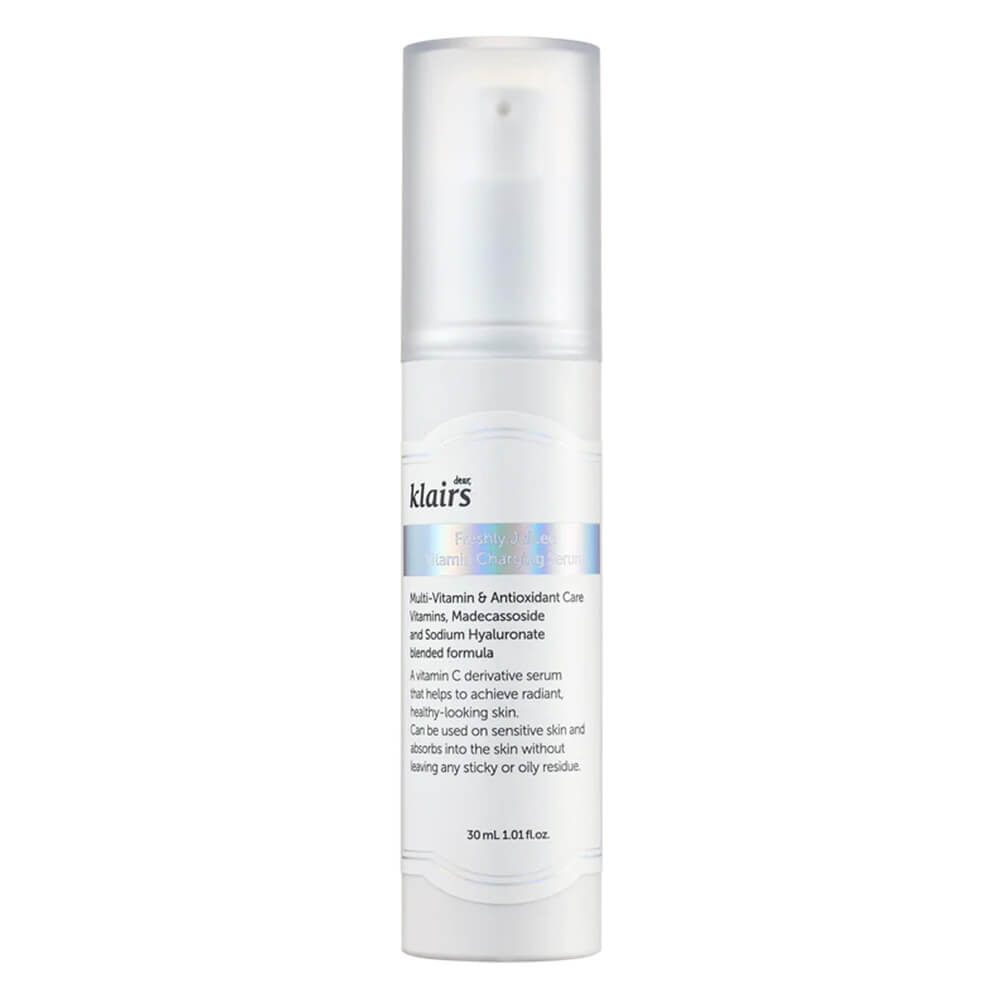 Лёгкая витаминная сыворотка для сияния кожи Dear, Klairs Freshly Juiced Vitamin Charging Serum выравнивает тон и уменьшает видимость пигментации, делает кожу гладкой и сияющей, устраняет тусклость. Средство с невесомой безмасляной текстурой быстро впитывается, отлично подходит для утреннего ухода. Обеспечивает антиоксидантную защиту и повышает барьерные функции эпидермиса. Не провоцирует раздражения. Содержит 10% стабильной формы витамина C, ниацинамид (витамин B3), пантенол (витамин B5), токоферол (витамин E), гиалуроновую кислоту, экстракты лимона, мандарина и грейпфрута, аденозин, мадекассосид и бета-глюкан.