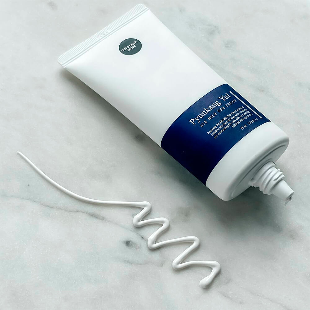 Гипоаллергенный солнцезащитный крем Pyunkang Yul ATO Mild Sun Cream SPF50 PA+++ надёжно защищает от UVA/UVB-лучей, предотвращает раздражение и повреждение кожи, не осветляет тон и не оставляет белых следов. Поддерживает уровень увлажнённости и укрепляет гидролипидный барьер. Содержит физические и химические фильтры, рейтинг EWG 1–6. Подходит для самой чувствительной, атопичной кожи.