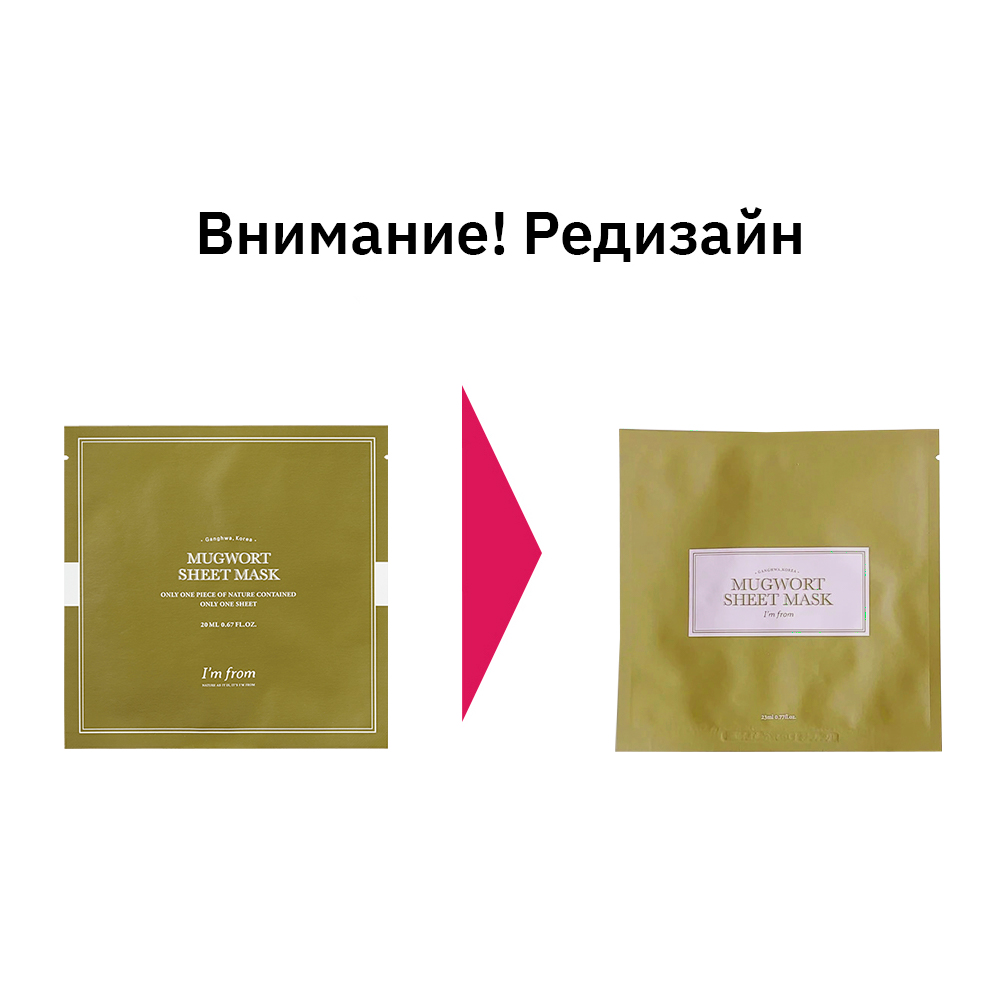 Тканевая маска с полынью для проблемной кожи I'm From Mugwort Sheet Mask успокаивает кожу, снимает воспаления и покраснения. Подходит для комплексного ухода за кожей с угревой сыпью и акне. Содержит высокую концентрацию экстракта полыни, известного своими успокаивающими свойствами.
