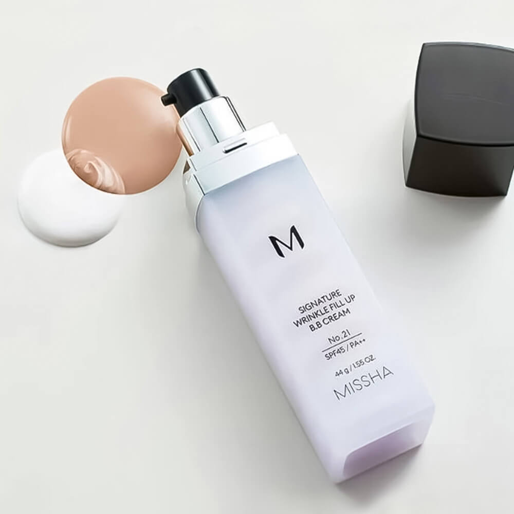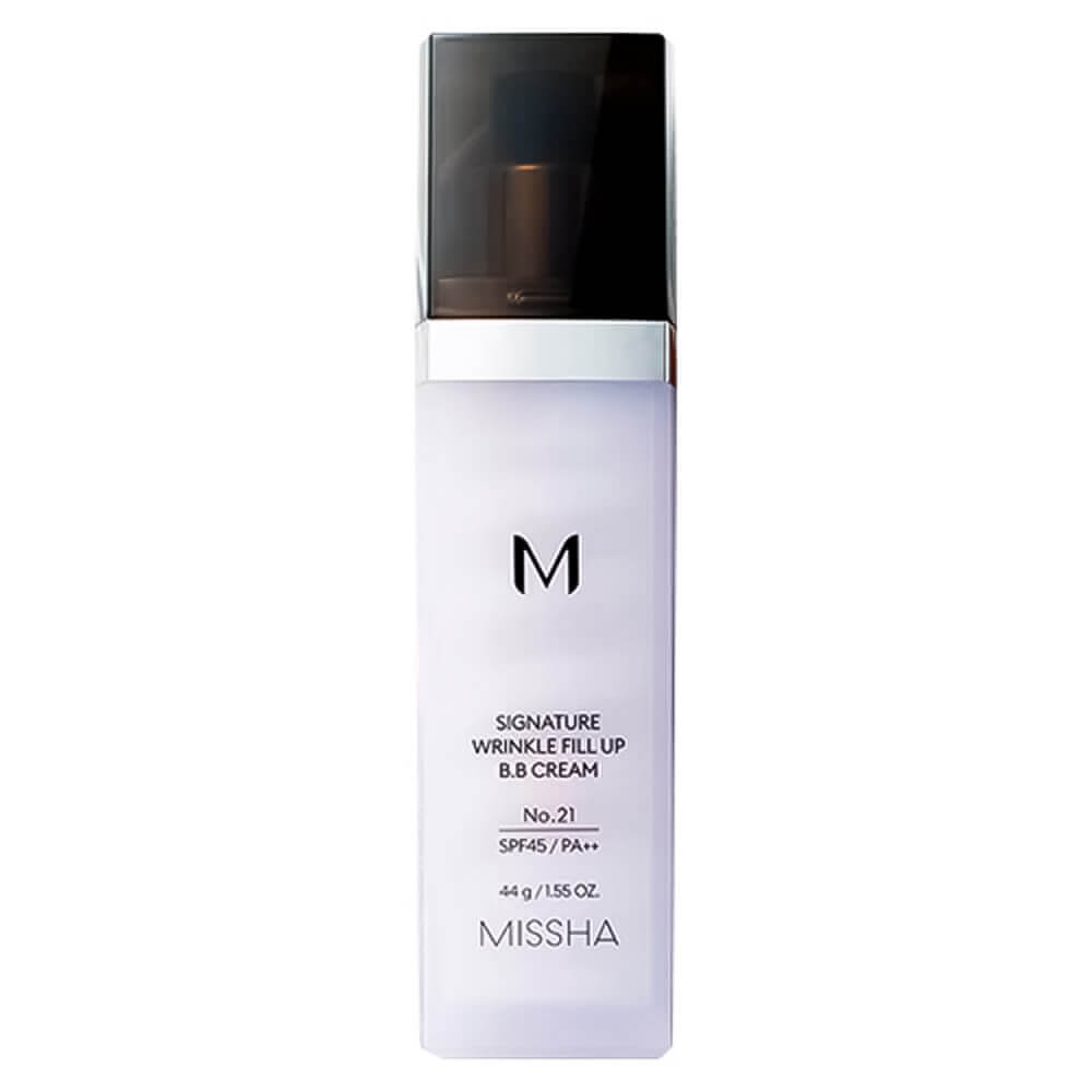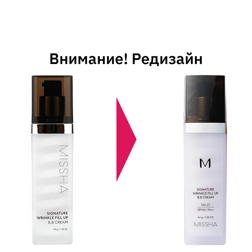 ББ-крем с филлером для зрелой кожи Missha Signature Wrinkle Fill-Up BB Cream SPF45 PA++. Тональное средство со специальным филлером эффективно заполняет морщины и разглаживает рельеф, обладает прекрасной скрывающей способностью и омолаживает. Имеет матовый финиш. Содержит физические и химические солнцезащитные фильтры.