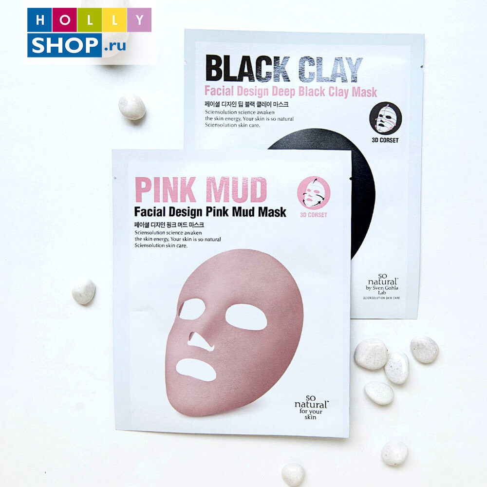 3D Маска-корсет с розовой глиной So Natural Facial Design Pink Mud Mask для очищения кожи и сужения пор. Белая и розовая глина в составе средства позволяют использовать его для любого типа кожи. Продукт прекрасно полирует поверхность эпидермиса и смягчает кожу, очищает, сужает поры, подтягивает и выводит токсины. Маска уникальной формы плотно прилегает к коже и с точностью повторяет контуры лица.