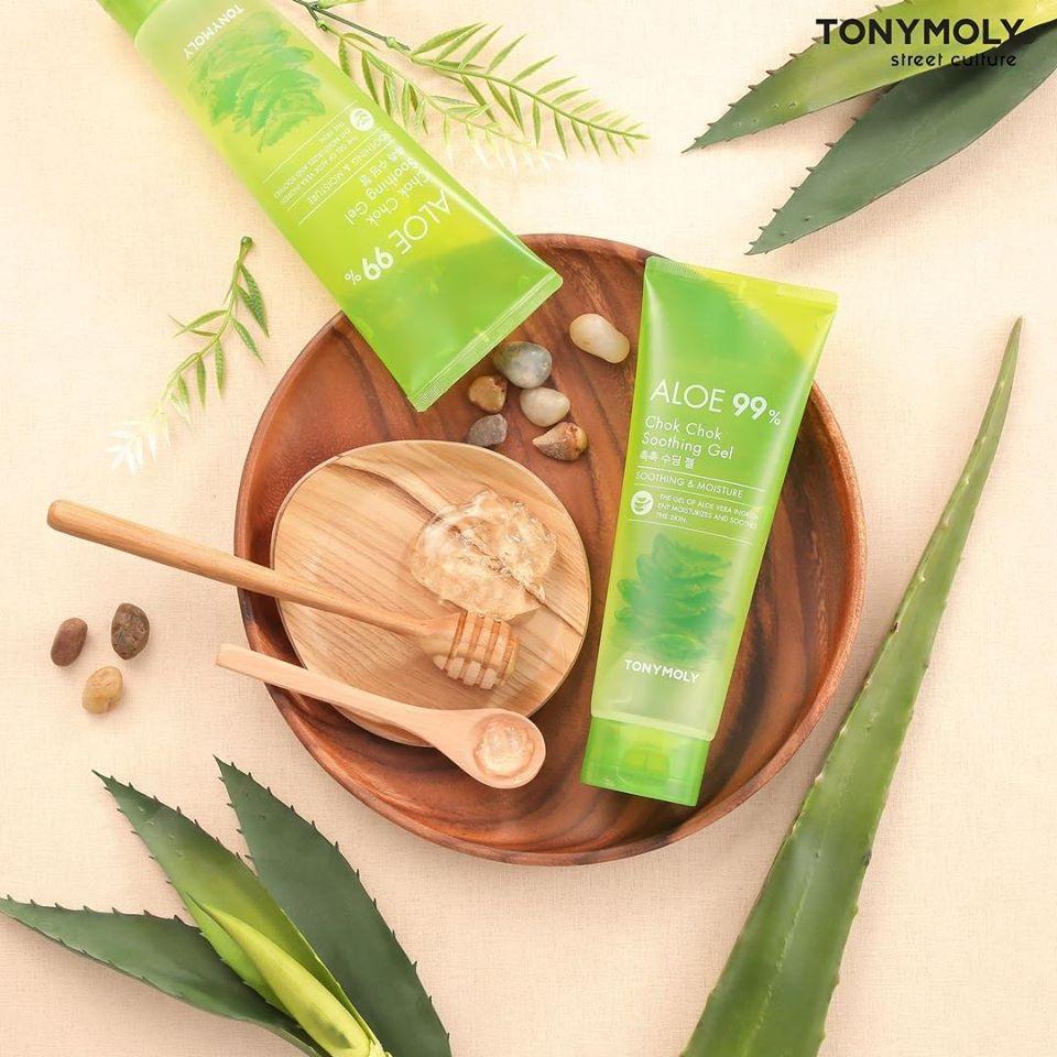 Универсальный увлажняющий гель с экстрактом алоэ Tony Moly Aloe 99% Chok Chok Soothing Gel активно увлажняет, обогащает полезными витаминами и микроэлементами, заживляет и успокаивает. Гель глубоко восстанавливает и оздоравливает, устраняет стянутость, сухость и обезвоженность. Можно применять в качестве ухода за поврежденными волосами волосами. Средство на 99% состоит из экстракта алоэ вера.