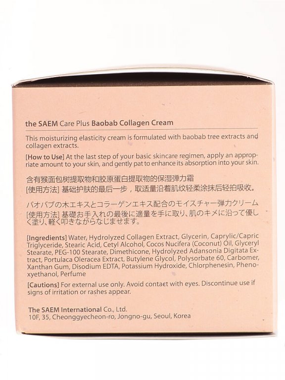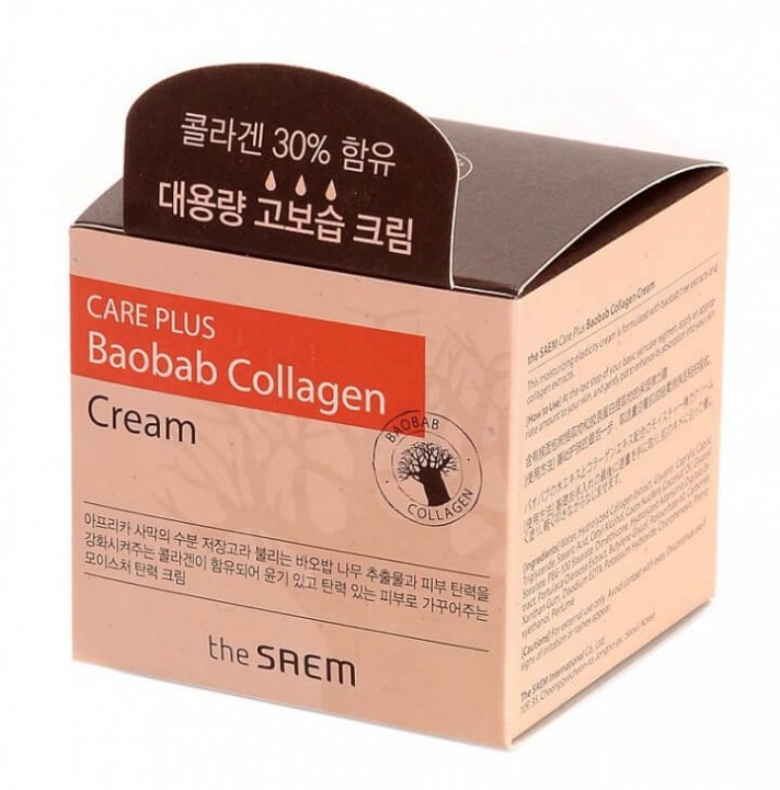 Коллагеновый крем для лица с экстрактом баобаба The Saem Care Plus Baobab Collagen Cream дарит максимальное увлажнение, избавляя от шелушений, сухости и чувства стянутости. Превосходное увлажняющее действие обеспечивают два активных компонента в составе: морской коллаген (30% от общего состава) и экстракт баобаба.